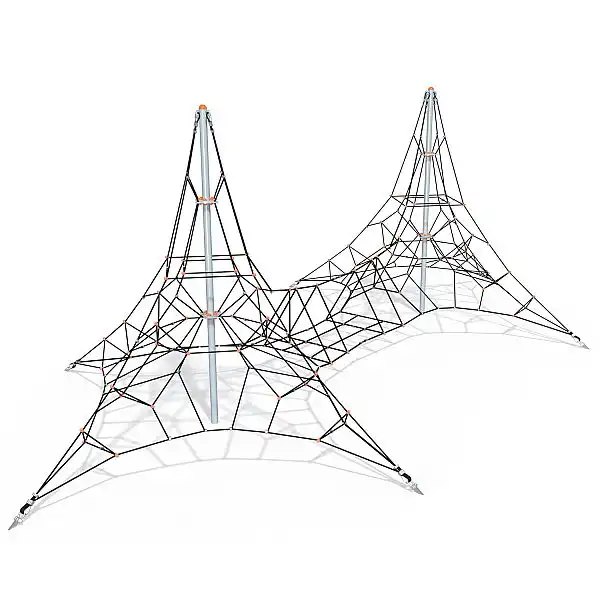 Ігровий канатний комплекс має форму піраміди, складається із металевої опори, що встановлюється методом бетонування та канатів, які натягуються на опору за допомогою спеціальних кріплень.