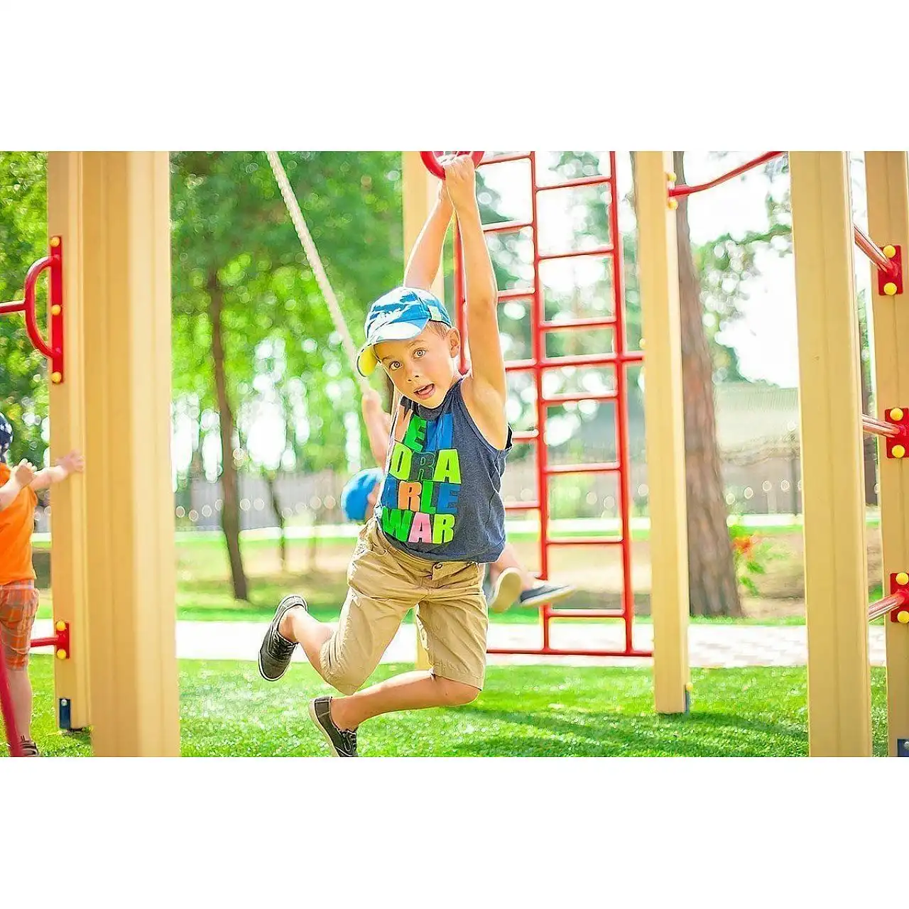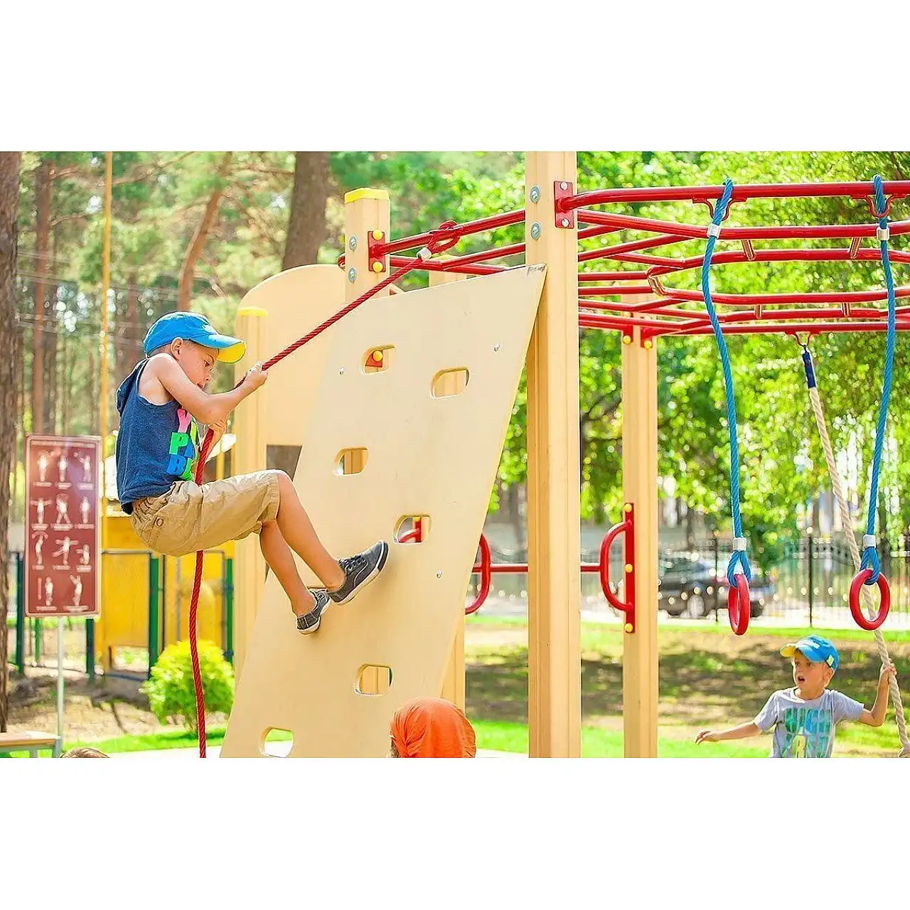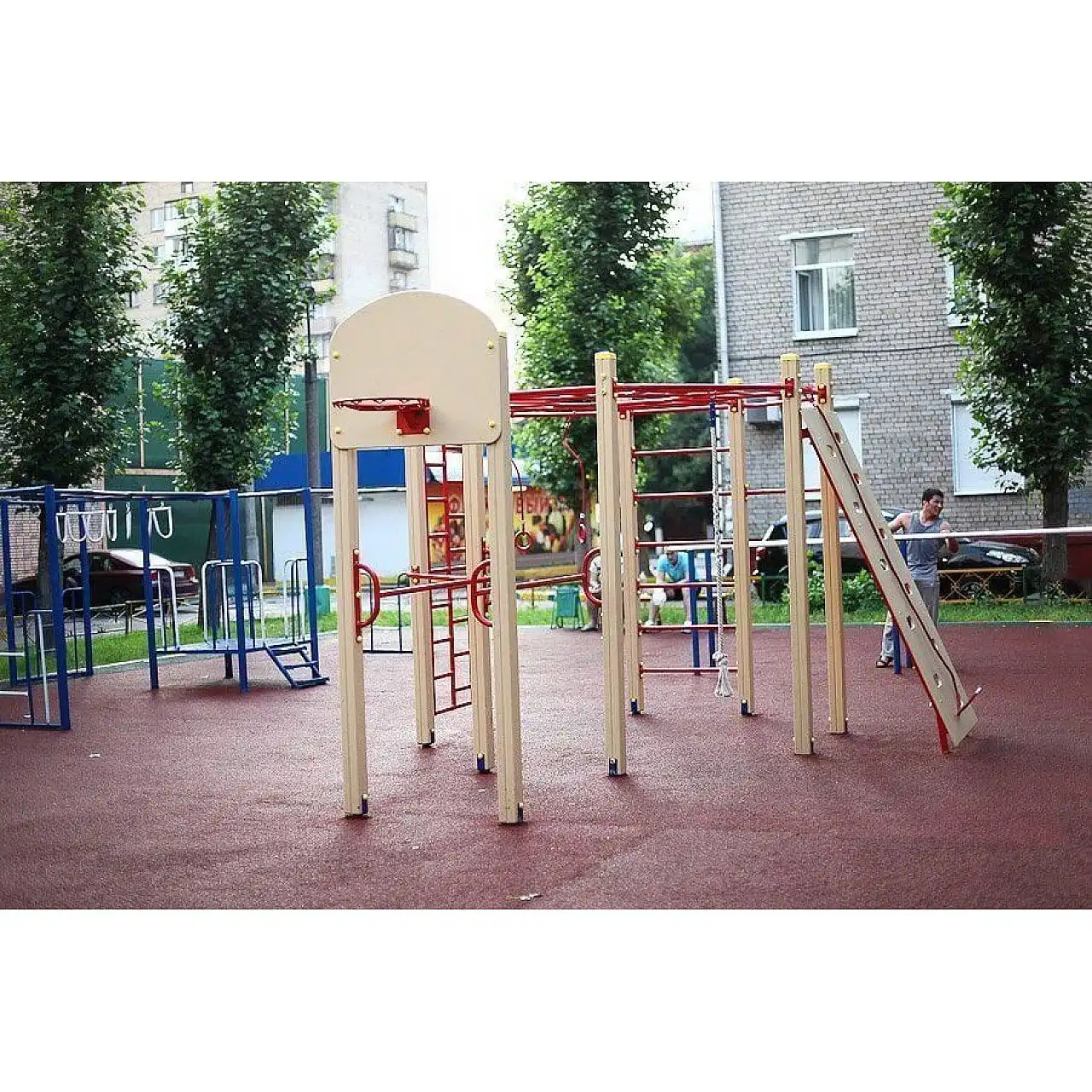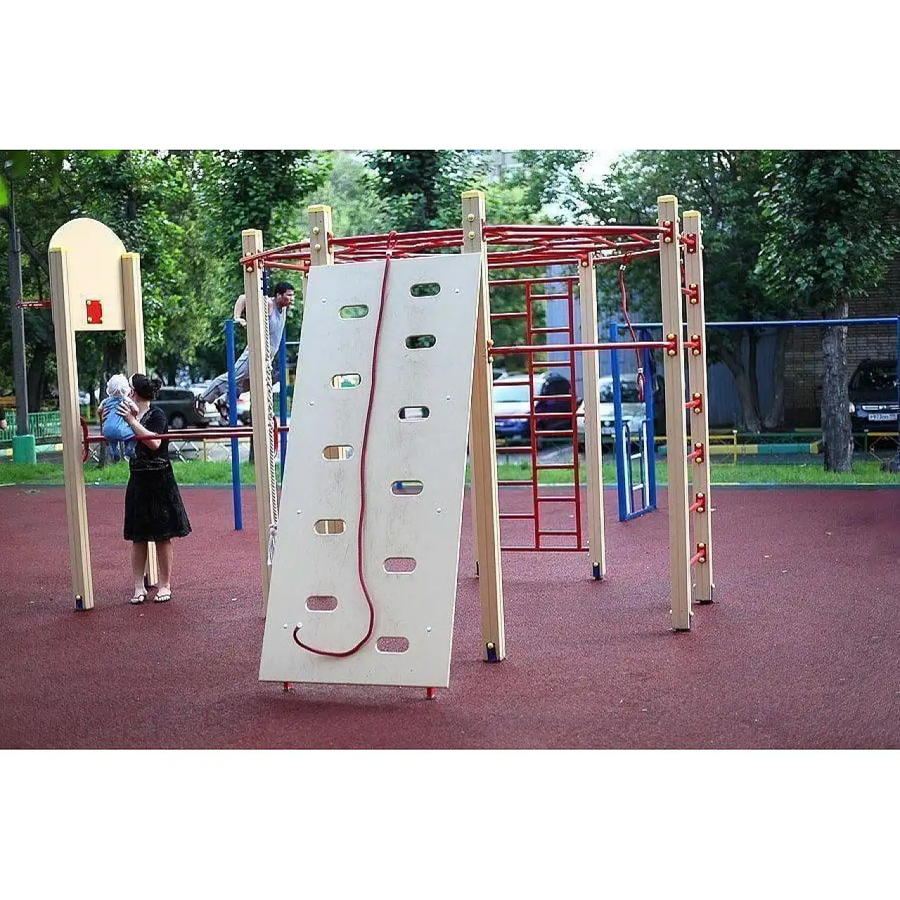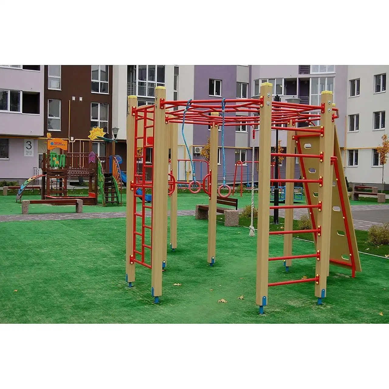 Гімнастичний комплекс "Атлет-1" призначений для розвитку у дітей координації руху, а також для занять фізичними вправами на відкритому повітрі. Гімнастичний комплекс є єдиною конструкцією, що складається з рукохода, ліани-драбини, прямих сходів, брусів, дошки скелелаза, кільця, каната та баскетбольного шита, які закріплені на дерев'яних брусах.