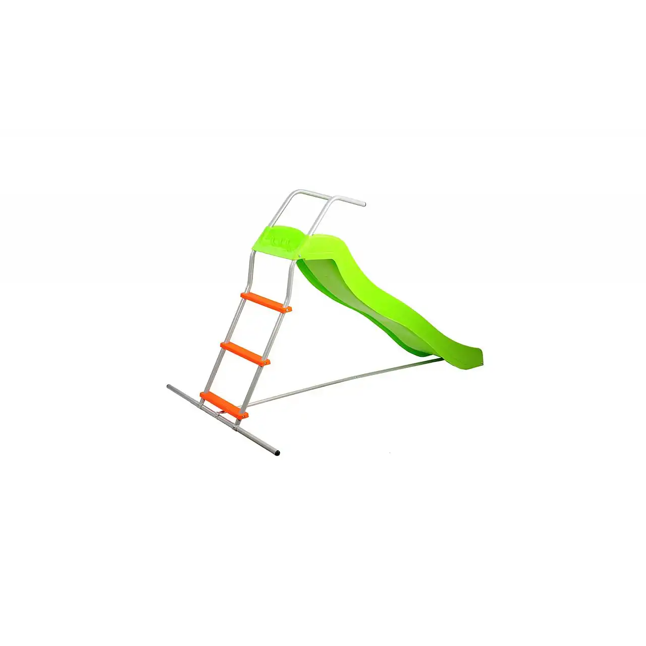 Гірка з драбинкою для дітей від 3 до 10 років. Гірка виготовлена з міцного поліетиленового матеріалу. Конструкція ковзання виготовлена із сталевих труб з порошковим покриттям. Стійка основа гірки, ручки для підвищення безпеки у верхній частині гірки, сходинки та верх гірки перфорований і нековзкий.