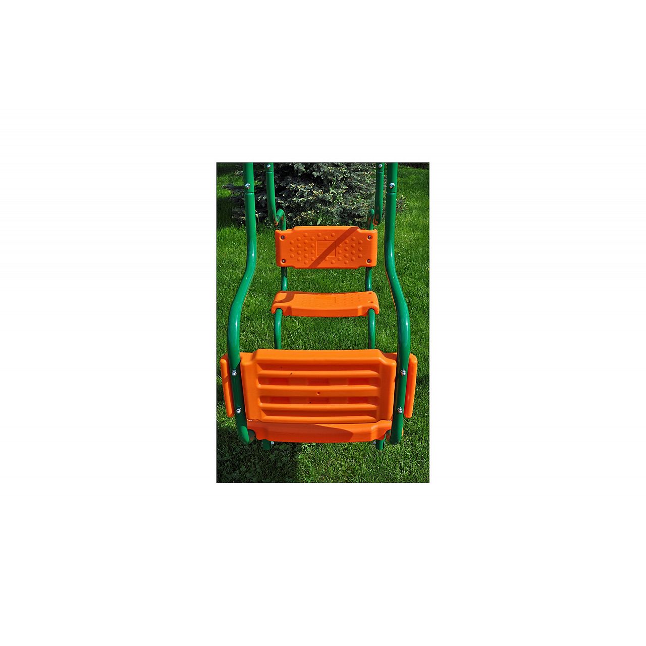 Дитяча садова гойдалка складається з декількох частин. Перший дозволяє грати двом людям. Сидіння мають міцні спинки, які дозволяють зберігати зручне та безпечне положення. Ніжки можуть спиратися на спеціальну основу. Ви повинні привести гондолу в рух, що означає ще більше задоволення разом.