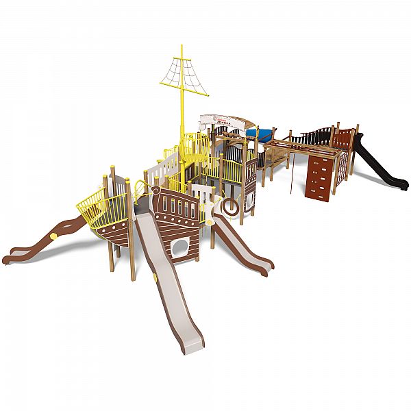 Ігровий комплекс "Фрегат" InterAtletika T918-VS-S715M призначений для ігрових фізичних вправ на відкритому повітрі. Комплекс складається з платформ, встановлених на стійках та з'єднаних між собою мостами. Крім моста до платформ приєднуються різні снаряди.