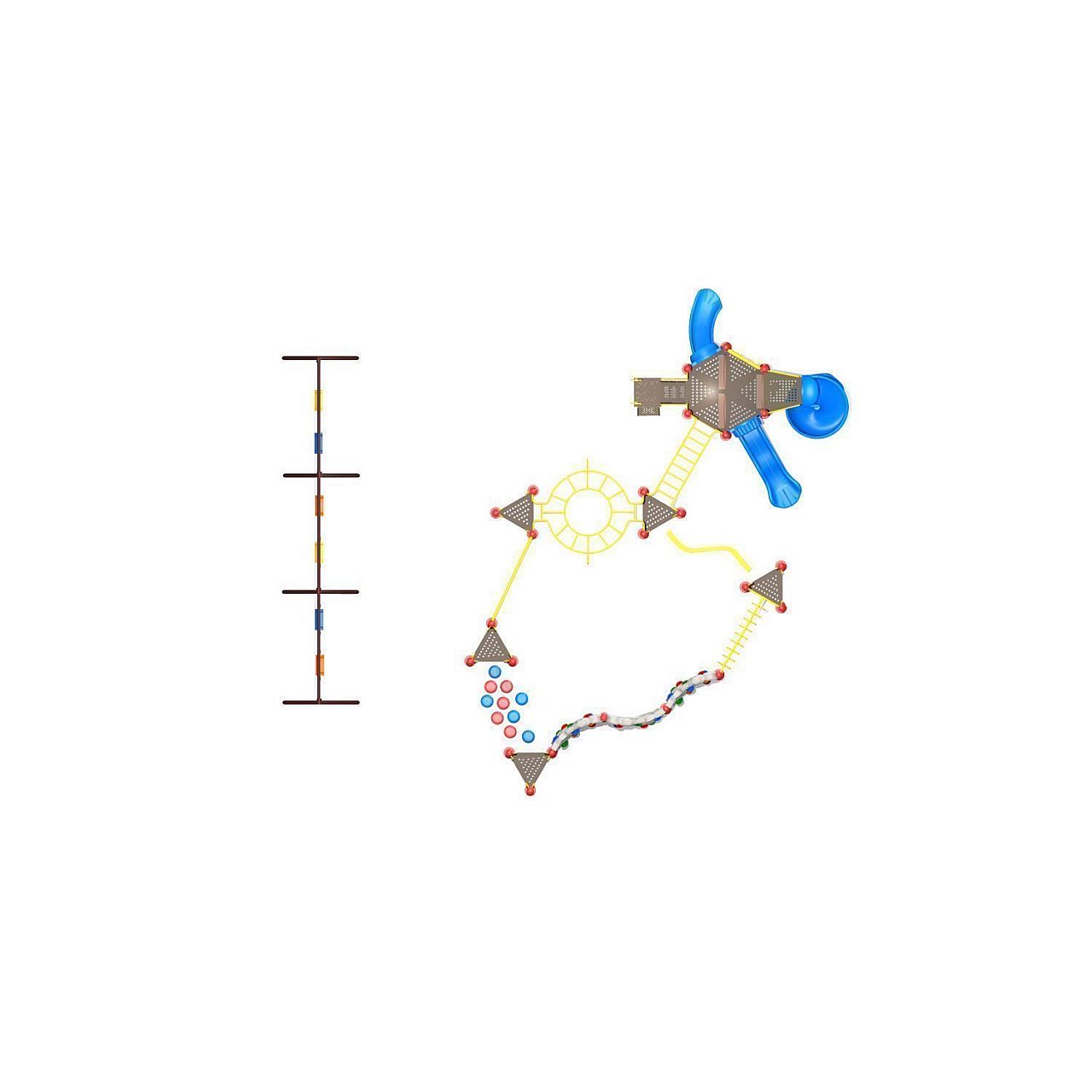 Ігрові комплекси від виробника. Сконструйовані з безпечних та надійних матеріалів, тому батьки можуть бути впевнені у безпеці своїх дітей під час гри, а самі діти отримають масу задоволення та вражень від проведення часу на відкритому повітрі.