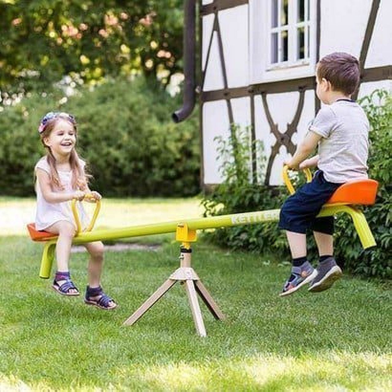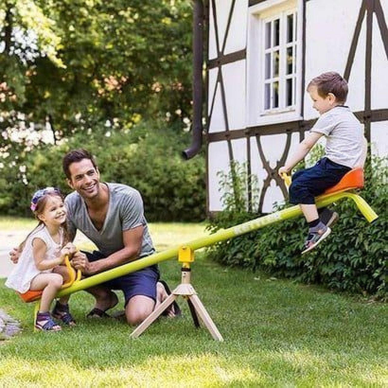 Гойдалки-каруселі ROTATING SEE-SAW дозволять дітям хитатися одразу у двох площинах. Можна обертатися навколо центральної осі та гойдатися вгору-вниз одночасно. А можна відключити на якийсь час функцію каруселів і користуватися тільки виключно гойдалками. Гойдалки-каруселі добре розвивають вестибулярний апарат і вміння працювати в парі. Гойдалки-каруселі виконані зі сталі зі стійким до вигоряння та подряпин поліестеровим покриттям. Пластикові сидіння мають зручну обтічну форму. Високі металеві ручки у вигляді петель допоможуть малюкам упевнено сидіти у сідлі. Дошка може обертатися, виконуючи функцію каруселі або може бути закріплена в стаціонарному положенні і використовуватися як гойдалка.