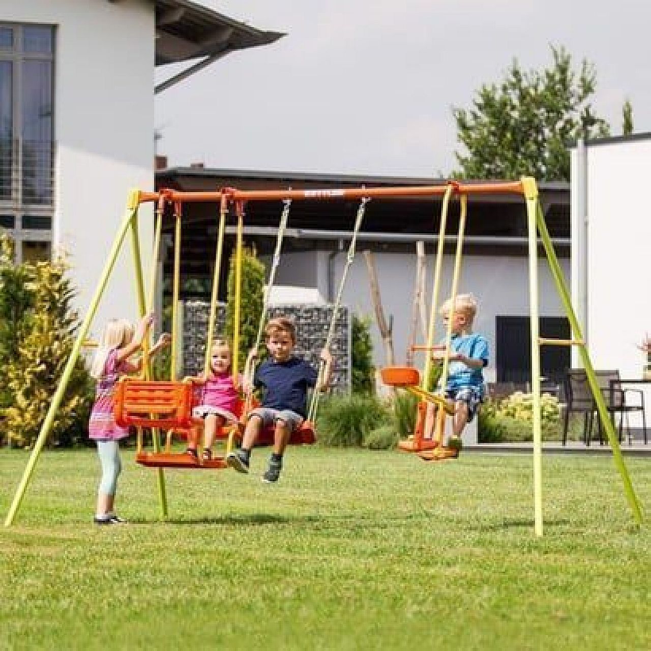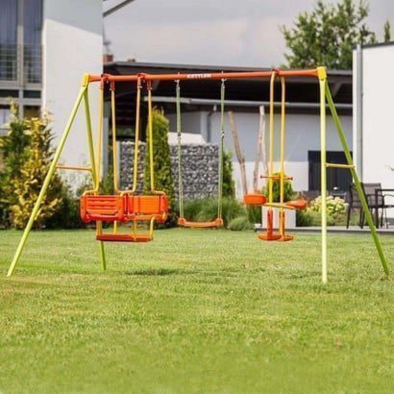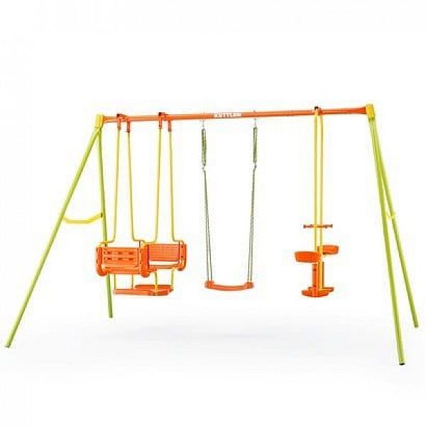 Дитячі гойдалки Kettler - це найбільші та найбільш місткі вуличні гойдалки. Три різні підвіски загалом із п'ятьма посадковими місцями - ось уже де роздолля для маленьких непосид! Там, де розташуються ці вуличні гойдалки, завжди лунатиме дитячий сміх. А розташовуватись вони можуть і на вуличному дитячому майданчику, і на Вашій особистій дачі. Вуличні дитячі гойдалки включають в комплектацію одномісну сидіння-дошку - всім відомий класичний вид гойдалок, двомісну гойдалку Вершник із зручними підніжками та ручками, а також двомісне сидіння Гондола у вигляді своєрідного човника. Спинки, сидіння, ручки та опори для ніг зроблені з високоміцного пластику та захищені протиковзким профілем. А форми сидінь немає гострих кутів. Система кріплення така, що передбачає можливість модифікації цих дитячих гойдалок. Щоправда, сидіння з обмежувачем для зовсім маленьких у базовий комплект не входить і купується додатково. Гойдалки для дачі виготовлені із міцних сталевих труб. Стійки вкриті поліестером, що не вигорає, який зберігає початковий колір гойдалок і захищає їх від подряпин. Збірна конструкція дуже зручна для транспортування дитячих гойдалок. У комплект також включені анкери для бетонування стояків. Це дуже важливо для стійкості гойдалки та, відповідно, безпеки Ваших дітей.