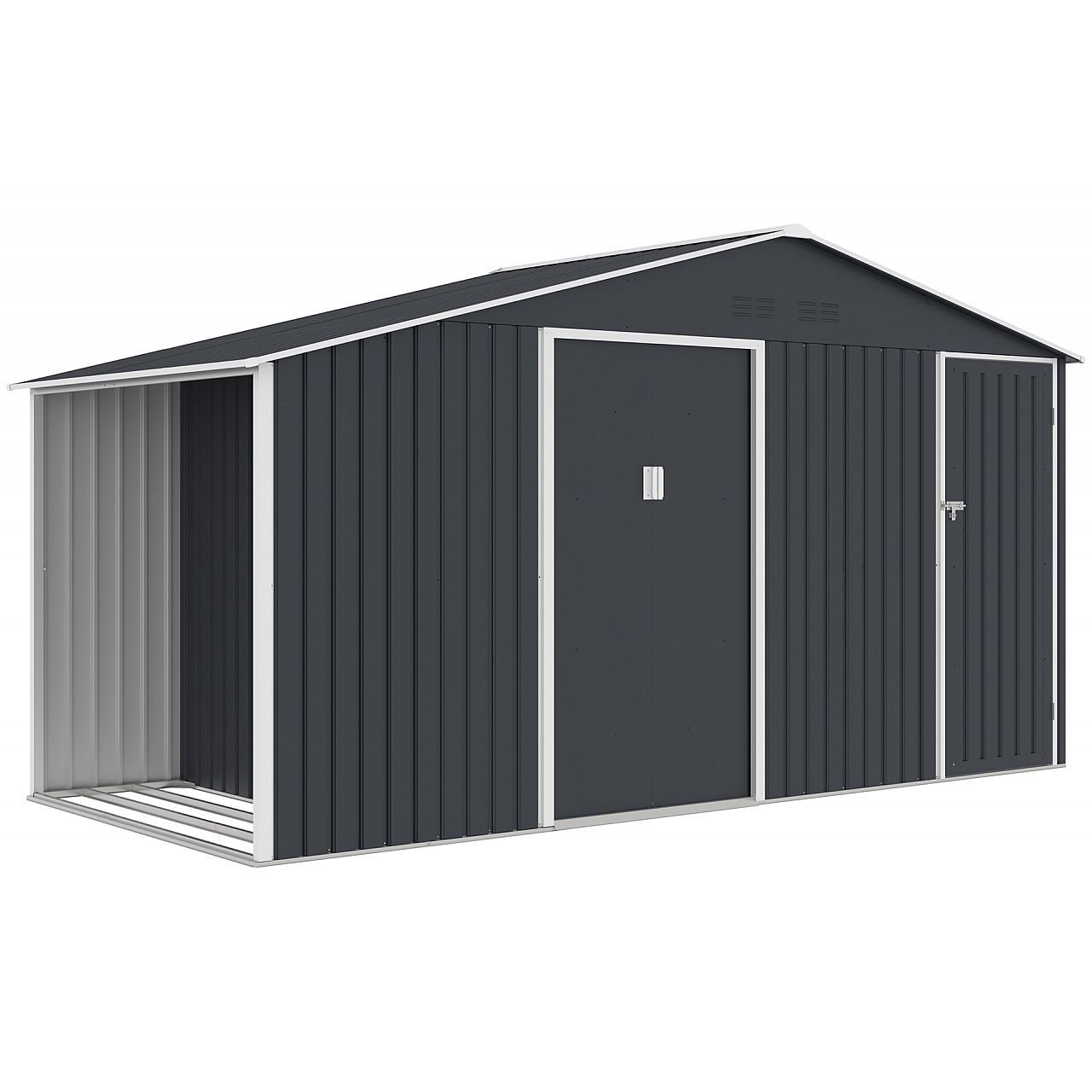 Будиночок для інструментів із місцем для деревини складається з двох кімнат із дверима, завдяки яким вам буде легше підтримувати порядок. В одній частині можна зберігати садові приналежності, а в іншій — інструменти для рукоділля. Будинок також ідеально підходить для терасових меблів, які можна легко розмістити в кімнаті з подвійними дверима. Ви можете замкнути їх на замок, щоб зберегти ваші речі в безпеці. Ви також можете облаштувати місце для майстрування в більшій кімнаті, якщо у вас немає домашнього гаража.