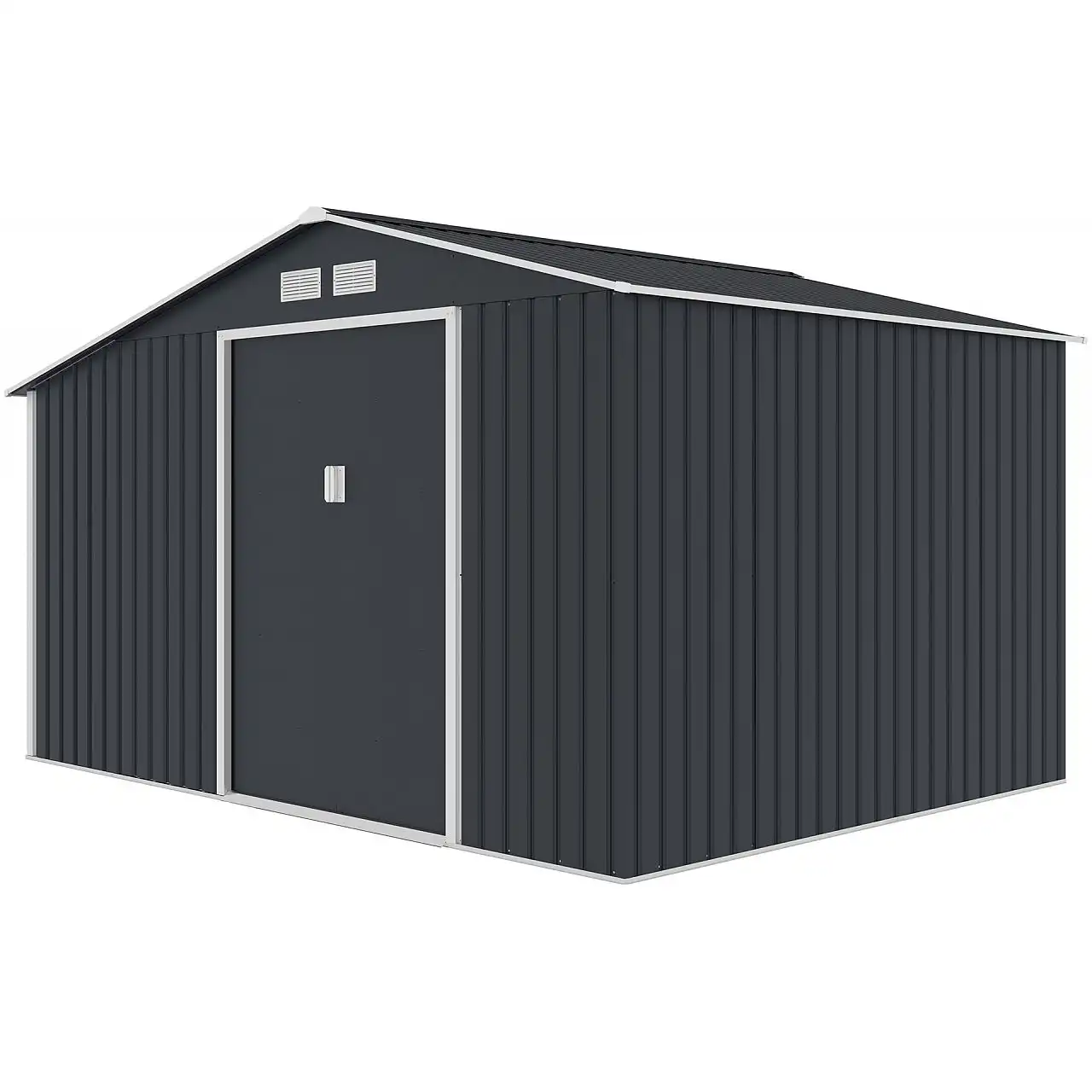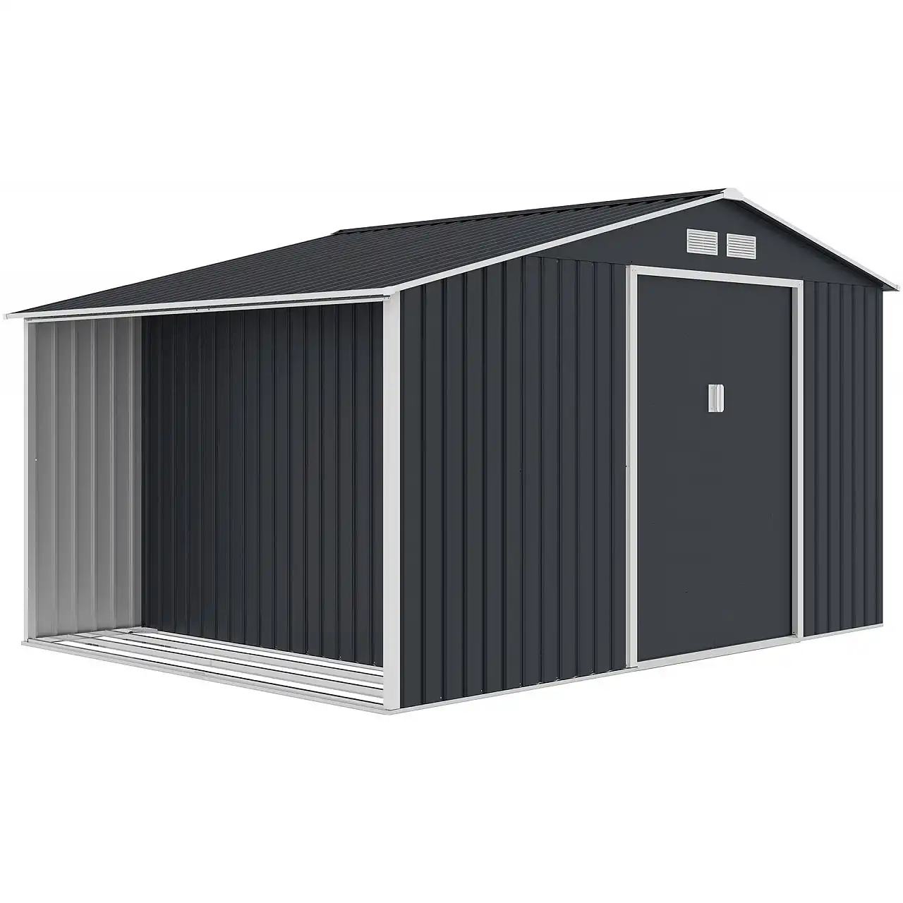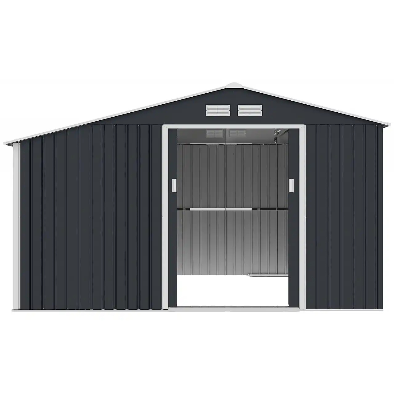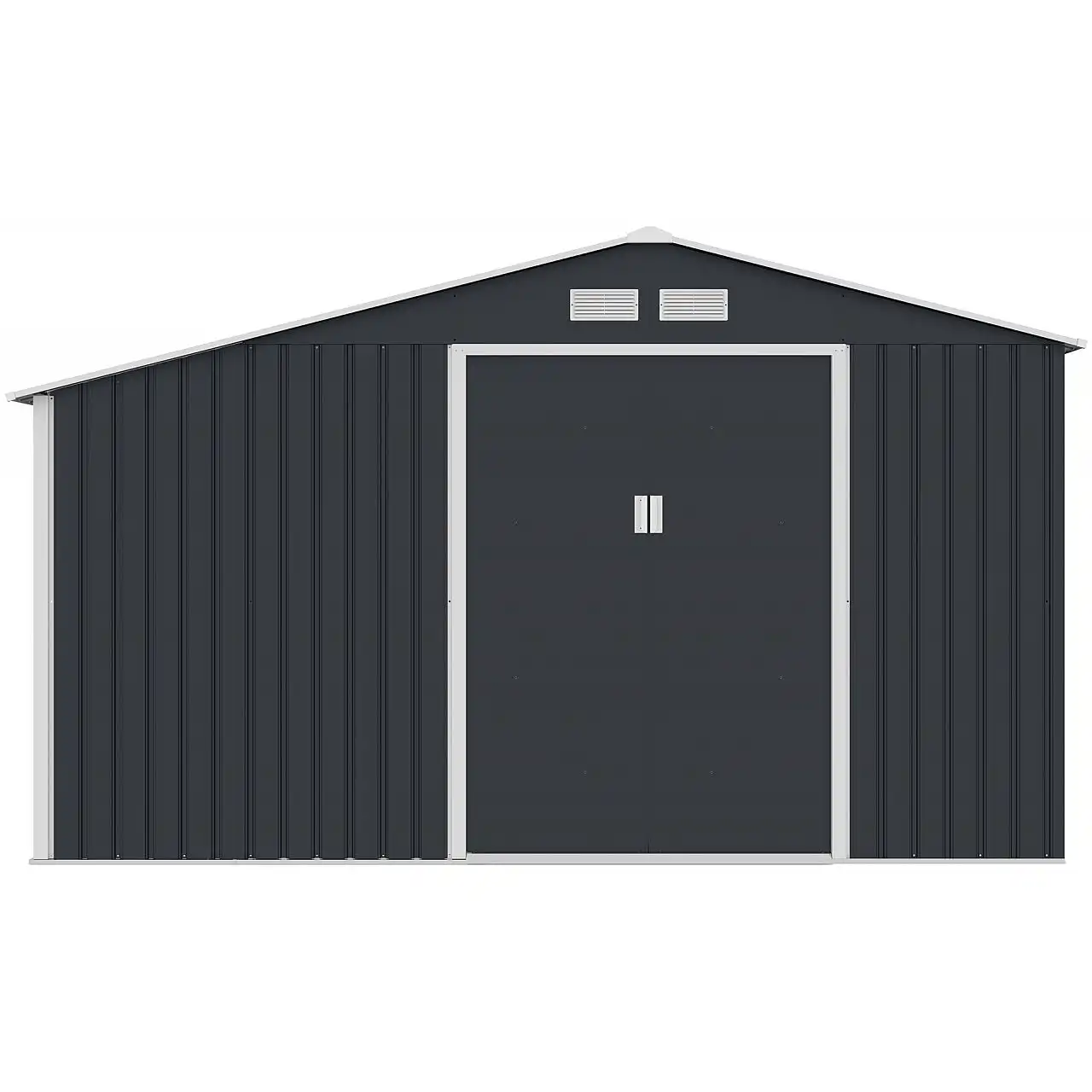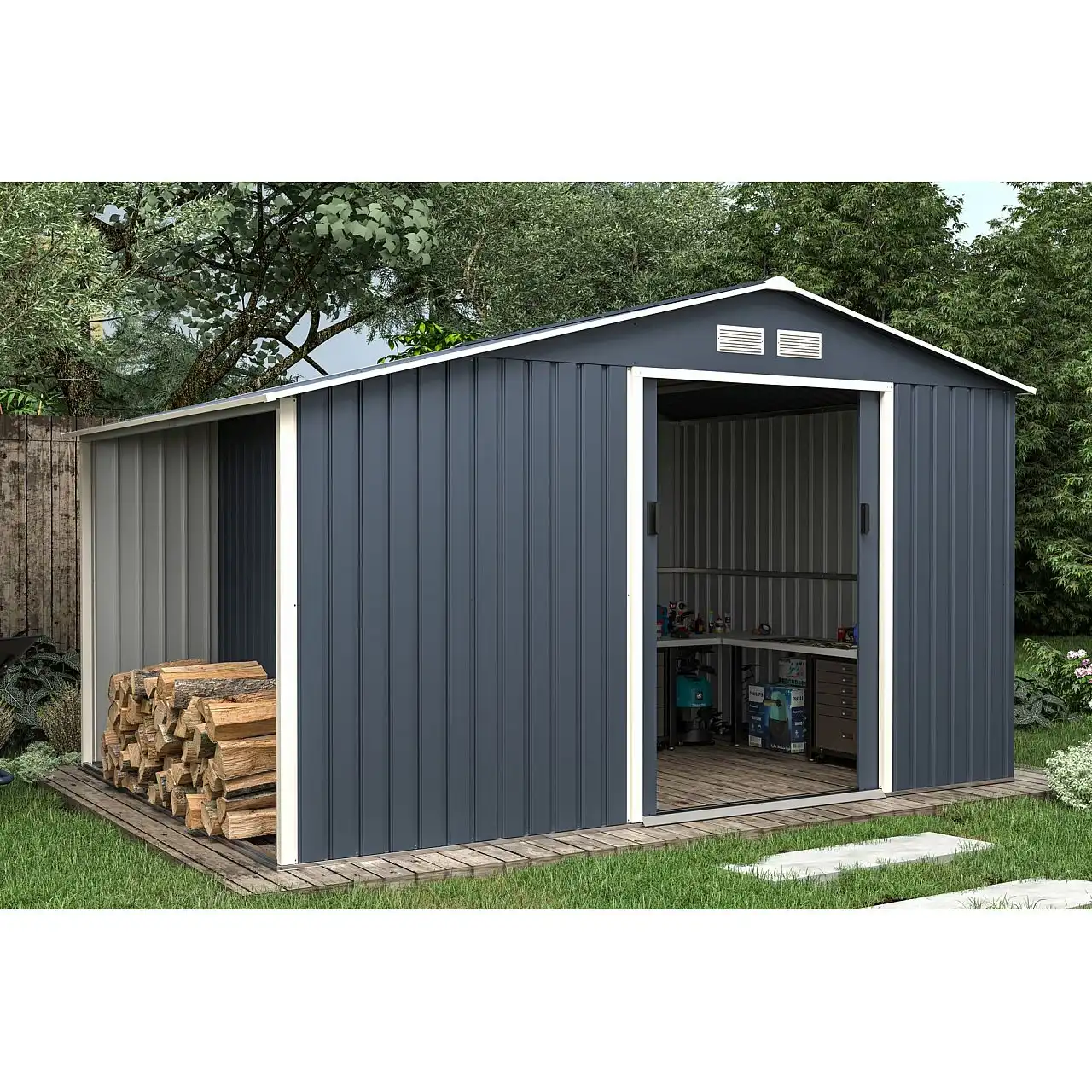 Будинок з дровітницею виготовлений з оцинкованого сталевого листа, завдяки чому він надзвичайно міцний і стійкий до корозії. Завдяки цьому він витримає багато років інтенсивної експлуатації. Крім того, він має вентиляційні отвори, що відповідають за циркуляцію повітря всередині. Зручність використання та безпечне зберігання інструментів гарантують двостулкові двері, які замикаються на замок.