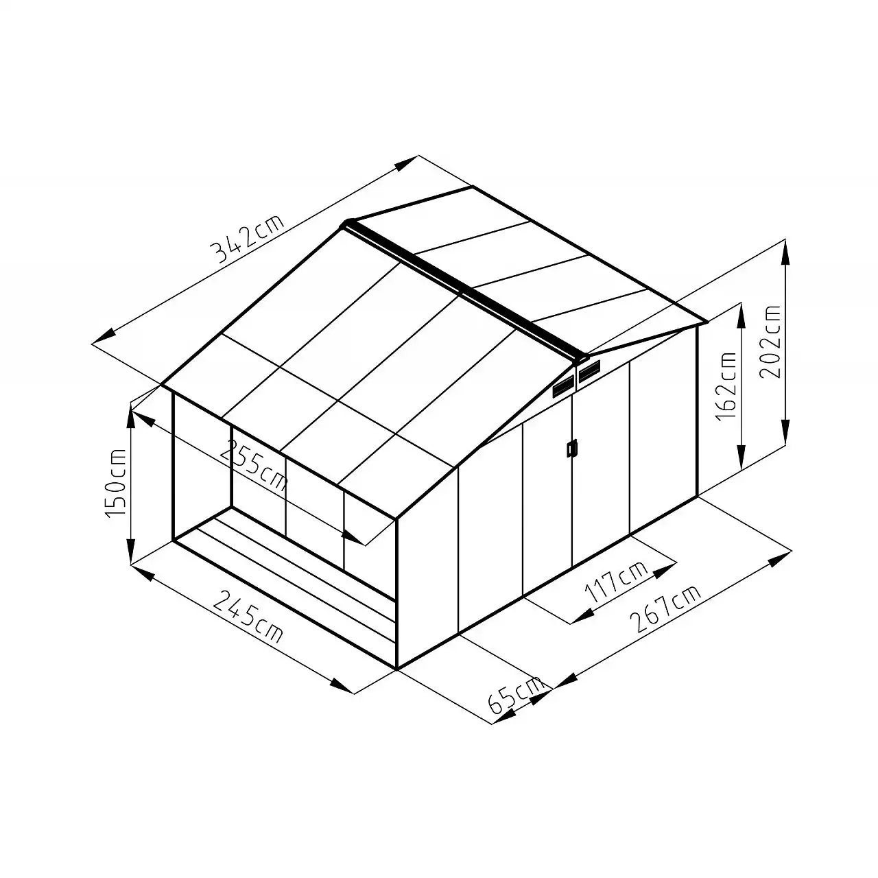 Розміри з дахом (ширина х довжина х висота) | 342 см х 255 см х 202 см |