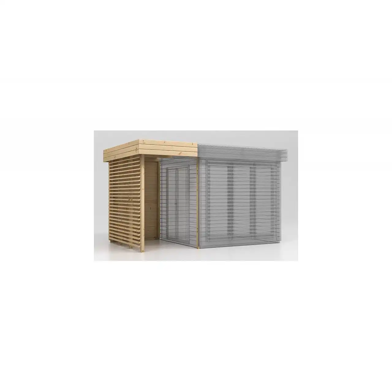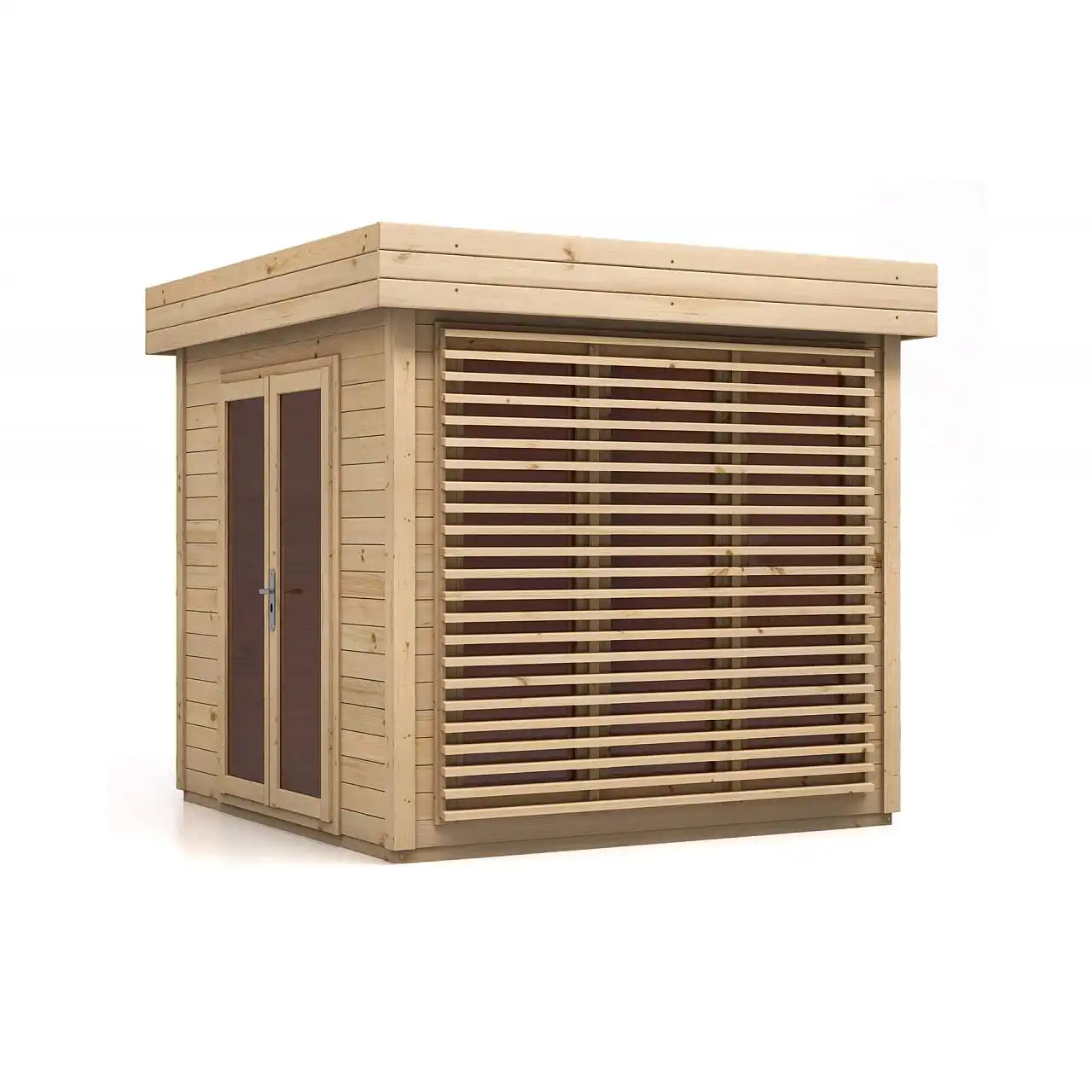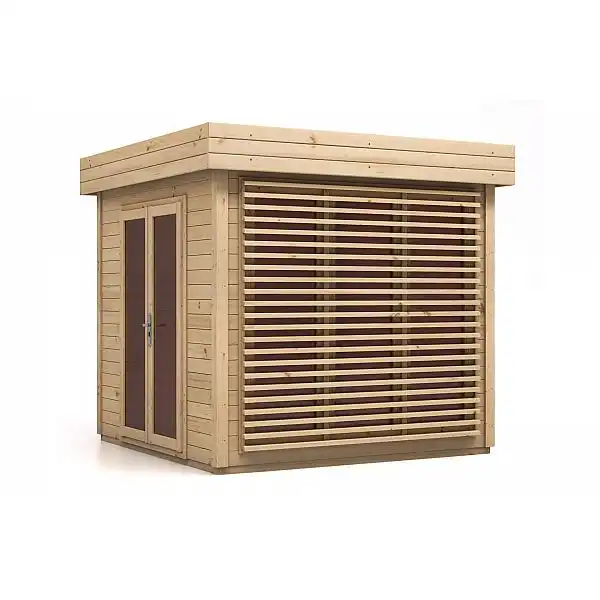 Lawenda Garden House - це сучасний і стильний об'єкт, повністю виготовлений з деревини ялини. Вибір найкращої сировини та точність у кожній деталі – лише деякі з особливостей цього чудового продукту. Ідеальне місце для відпочинку. Плоский дах, покритий асфальтобетоном, захищає всю будівлю від несприятливих погодних умов. Будинок Лавенда - незвичайно засклена альтанка. На його передній частині є три вікна з коричневим антизоляційним склом, а додаткове освітлення забезпечує велике скло в подвійних дверях. Є можливість придбати прибудову до альтанки, яка збагачує простір і зовнішній вигляд.