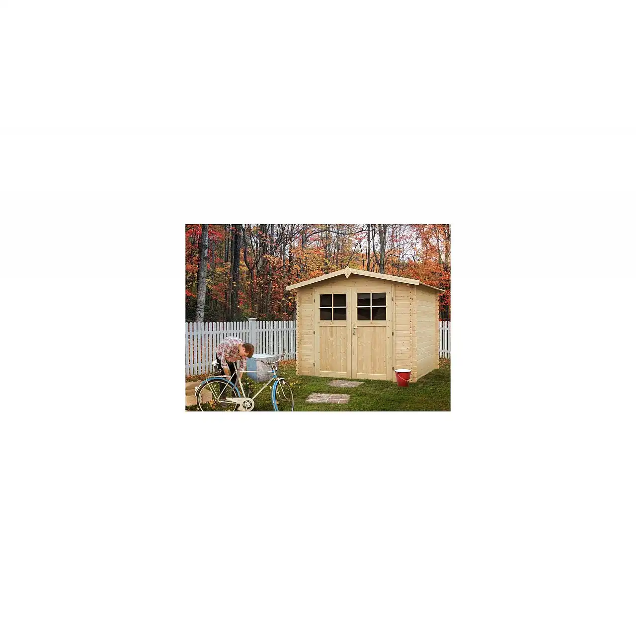 Зберігання вашого майна є дуже важливим питанням у процесі догляду за ним. Належним чином доглядайте за своїми робочими інструментами та іншими предметами, які потребують укриття в міжсезоння. Ідеальне місце для цього – садовий будиночок Вогник, який ви можете розмістити в будь-якому місці свого саду. Його класичний зовнішній вигляд дозволяє вписати його в будь-який стиль саду. Покрівля, покрита бітумною повстю, забезпечує захист від несприятливих погодних умов, а її двосхила конструкція запобігає накопиченню води та снігу. Подвійні двері полегшують доступ до речей, що зберігаються всередині, а замок гарантує додаткову безпеку. Засклені вікна в дверях забезпечують освітлення інтер'єру невеликого садового складу.