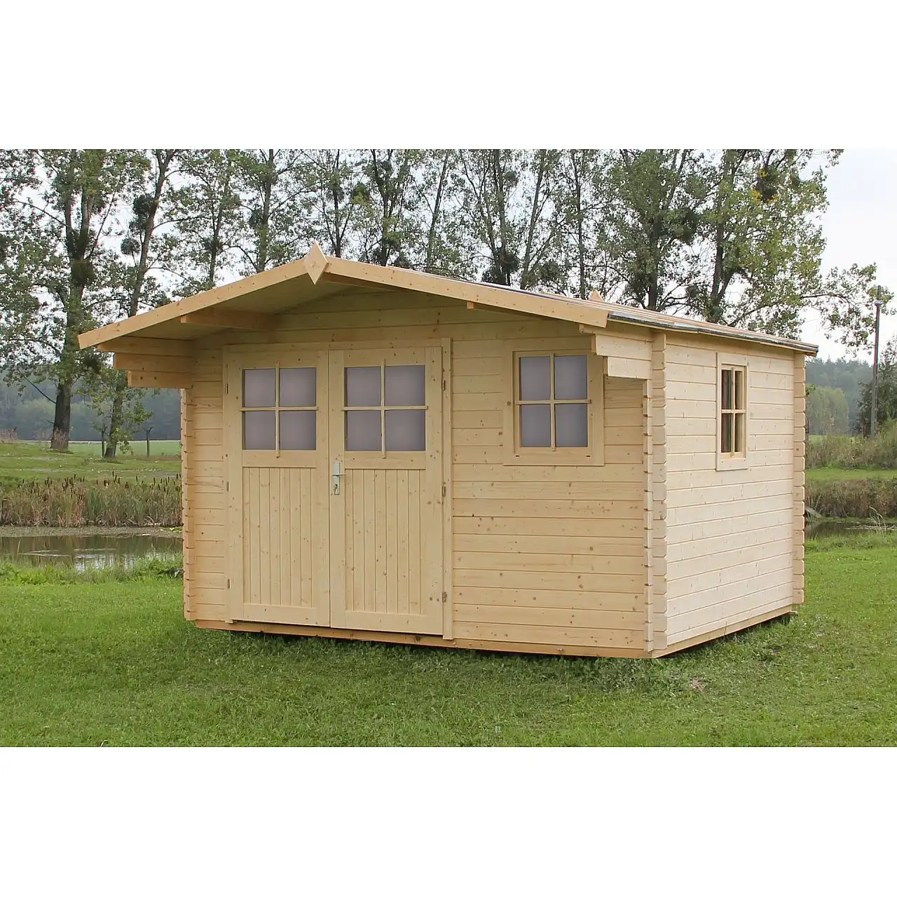Якщо ви ентузіаст DIY, збірка не складе для вас труднощів. Це полегшують шпунтовані дошки. Вам потрібно лише оснаститися такими інструментами, як викрутка, молоток, ручна пилка для різання та драбина. Разом з конструкцією будинку ми надамо вам інструкцію та елементи монтажу. Субстрат рекомендуємо підготувати заздалегідь. Підійде бруківка, бетонні блоки або звичайна стяжка. Будинок виготовлений зі скандинавської ялини в сирому стані (нефарбований, не просочений). Тому ми рекомендуємо просочення та фарбування самостійно, або ж скористатися додатковим варіантом.