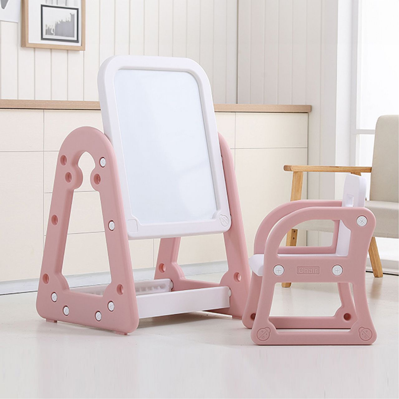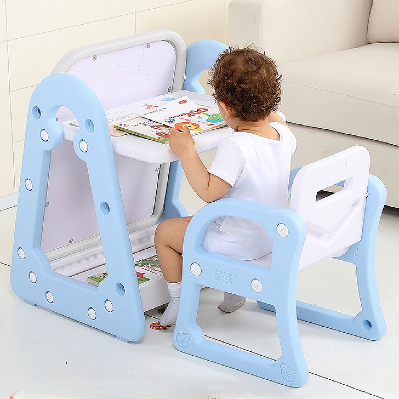 Однією з чудових переваг цієї дошки є те, що її можна використовувати без стільця . Таким чином, ваша дитина може сидіти на своєму улюбленому ігровому килимку або малювати, не виходячи зі свого пінопластового килимка-пазла.