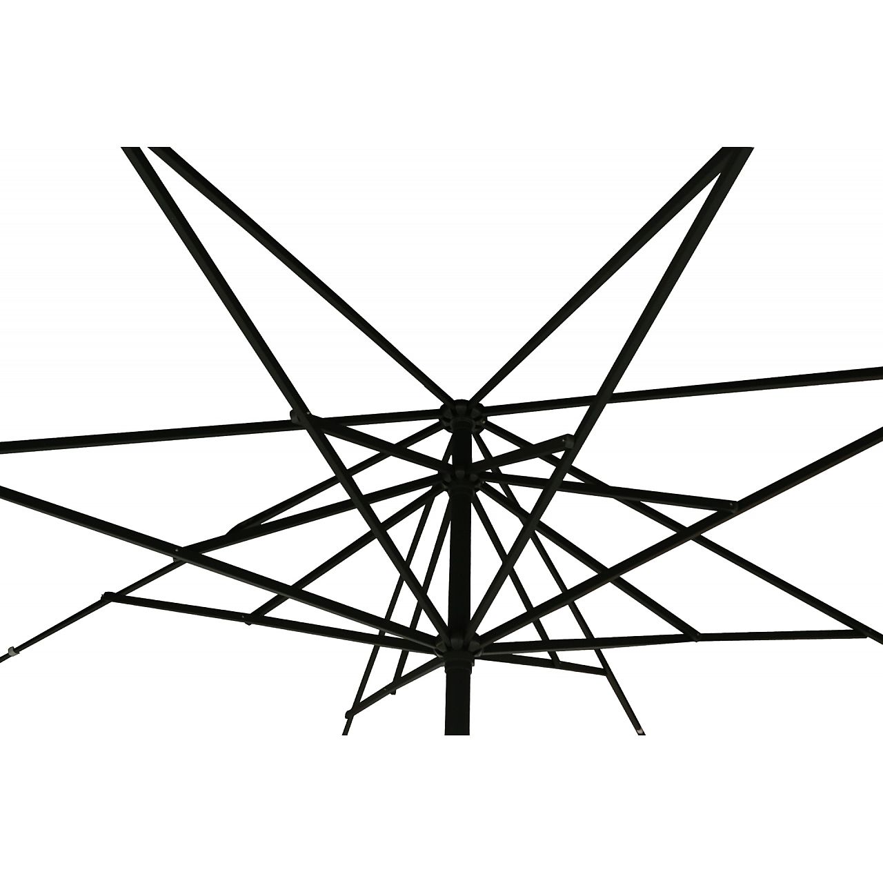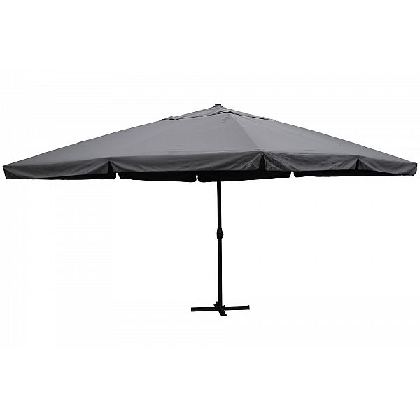 Міцна конструкція парасольки зі сталі з порошковим покриттям. Навіс для парасольки виготовлений з міцного поліестерового матеріалу. Завдяки використанню кривошипної системи складання та розкладання парасольки дуже легке та комфортне. Величезні розміри парасольки забезпечують велику кількість тіні, тому парасолька відмінно підходить для присадибних ділянок і ділянок, а також в садах кафе або ресторанів.
