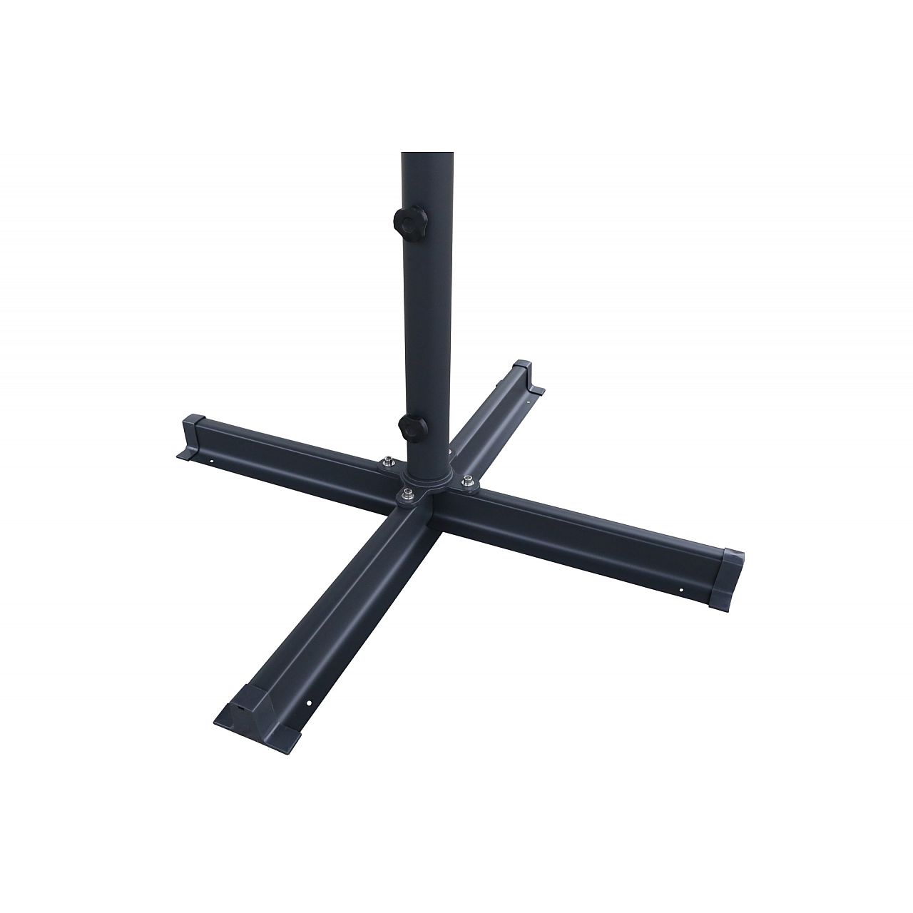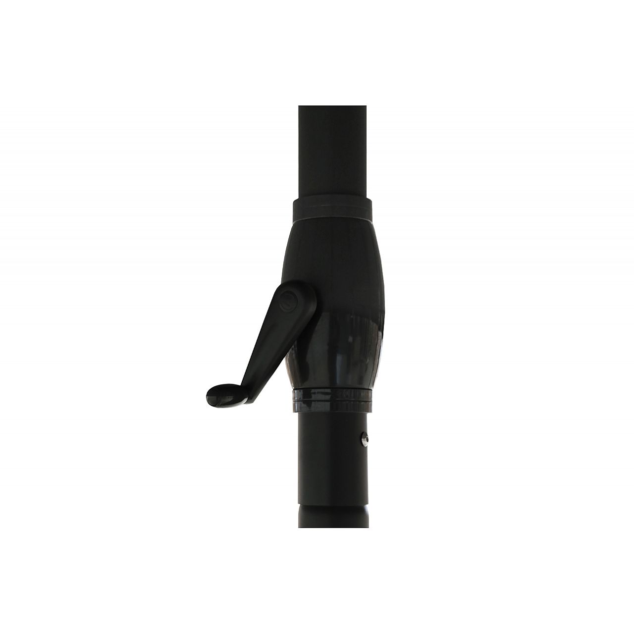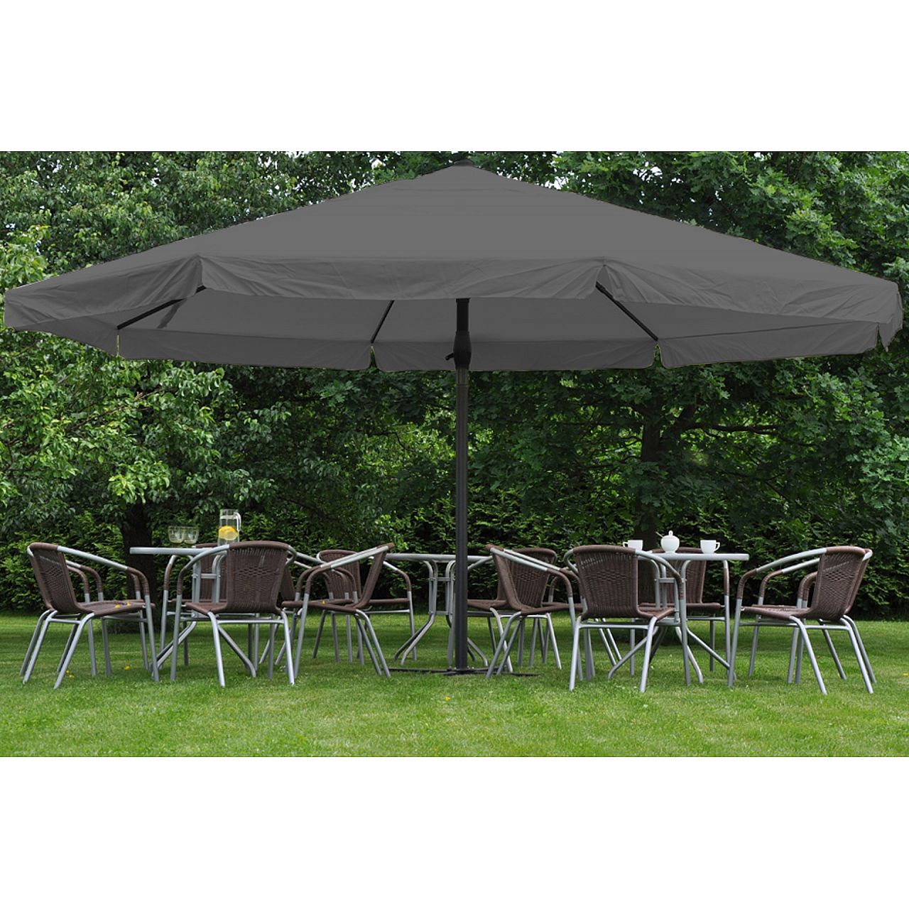 Міцна конструкція парасольки зі сталі з порошковим покриттям. Навіс для парасольки виготовлений з міцного поліестерового матеріалу. Завдяки використанню кривошипної системи складання та розкладання парасольки дуже легке та комфортне. Величезні розміри парасольки забезпечують велику кількість тіні, тому парасолька відмінно підходить для присадибних ділянок і ділянок, а також в садах кафе або ресторанів.