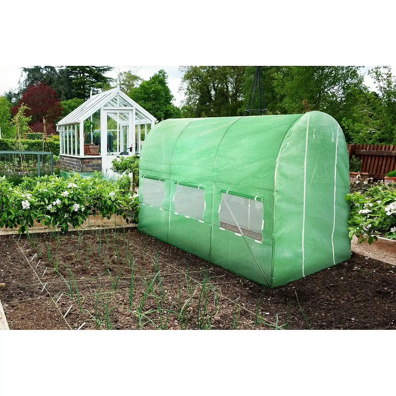 Бічні вікна, захищені москітними сітками, забезпечать вентиляцію та повітрообмін у садовому тунелі. Широкі двері оснащені двома блискавками, які при згортанні можна закріпити над входом за допомогою засувок.