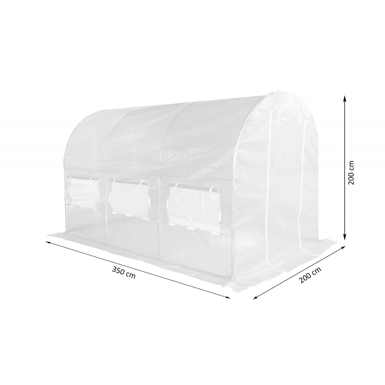 Бічні вікна, захищені москітними сітками, забезпечать вентиляцію та повітрообмін у садовому тунелі. Широкі двері оснащені двома блискавками, які при згортанні можна закріпити над входом за допомогою засувок.