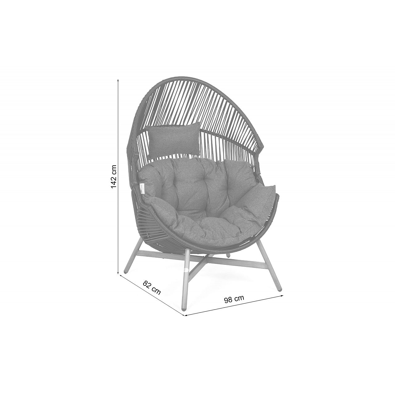 Крісло-кокон розмірами 98 см х 107 см х 142 см (ширина х глибина х висота) оснащено регульованими задніми ніжками, тому ви можете вирішити, яке положення буде для вас найбільш комфортним. Ознайомтеся з нашою пропозицією і переконайтеся, що це найкращий вибір для вашого будинку та саду!