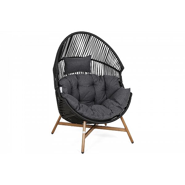 Якісні меблі є перевіреним вибором протягом багатьох сезонів. Це саме те, що наше крісло-кокон Kongo Black / Grey з техноротангу зроблено з міцних матеріалів. Ідеальне поєднання сталі з порошковим покриттям і техноротанга гарантує стійкість конструкції. М'яке сидіння з подушками робить крісло комфортним у користуванні.