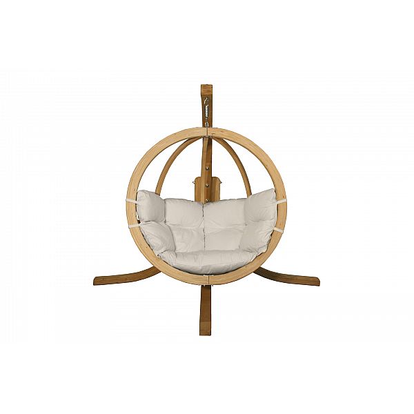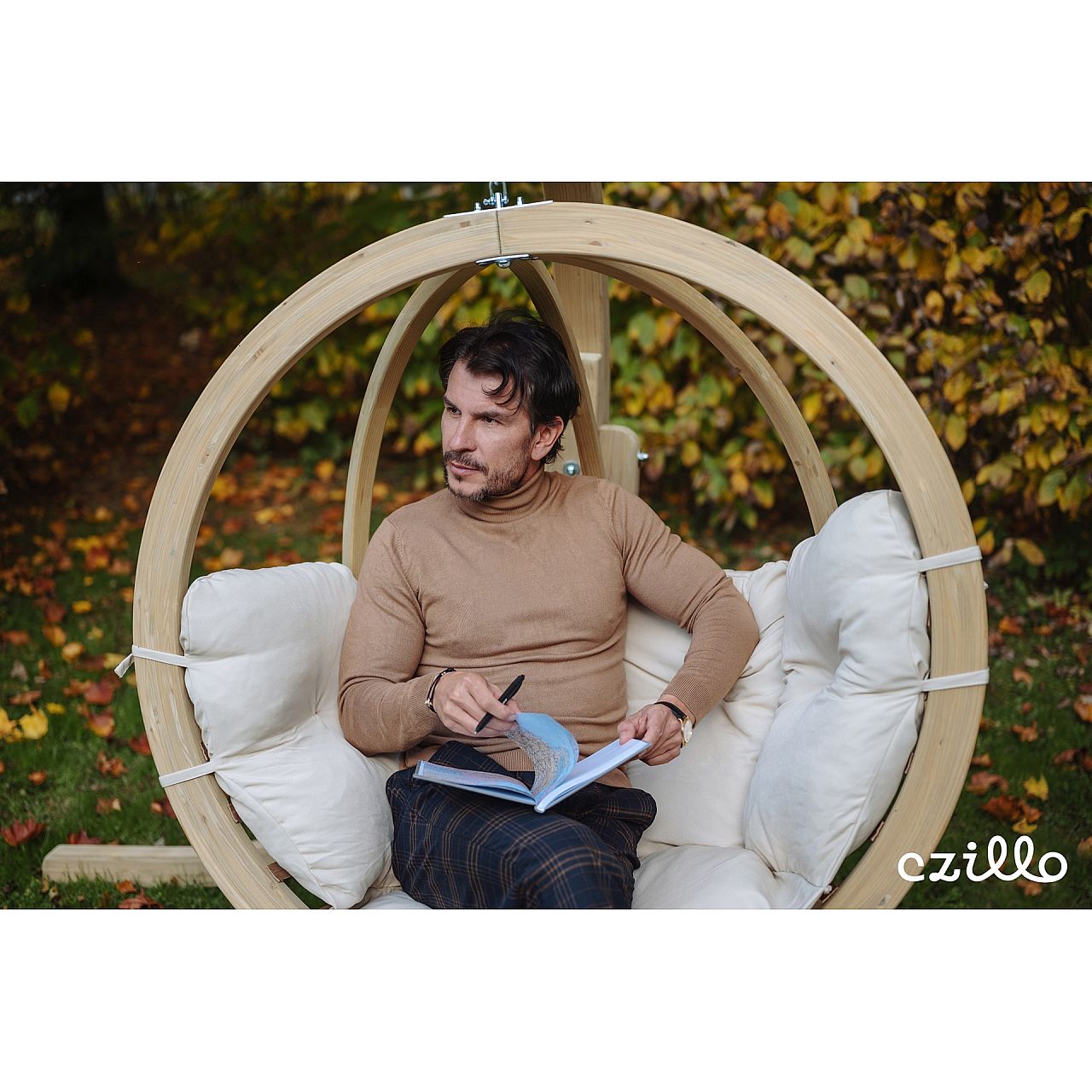 Підвісне крісло O-Zone CZILLO - це місткий кошик, оснащений м'якою подушкою і підставкою з просоченої, шарово-склеєної деревини ялини. Блискавка в подушці дозволяє легко зняти тканину для прання або заміни на нову. Вбудований вертлюг дозволить вам обертатися навколо власної осі. Завдяки широкому розносу ніжок підставка забезпечить стільцю належну стійкість. Всі елементи виготовлені в Польщі, а подушки пошиті вручну. Для ще більшого комфорту рекомендуємо придбати водонепроникний чохол, який дозволить насолоджуватися виробом відразу після дощу.