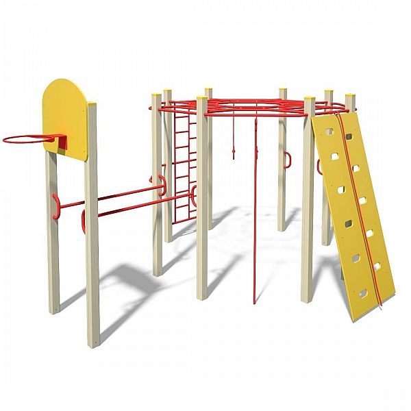 Гімнастичний комплекс "Атлет-1" призначений для розвитку у дітей координації руху, а також для занять фізичними вправами на відкритому повітрі. Гімнастичний комплекс є єдиною конструкцією, що складається з рукохода, ліани-драбини, прямих сходів, брусів, дошки скелелаза, кільця, каната та баскетбольного шита, які закріплені на дерев'яних брусах.