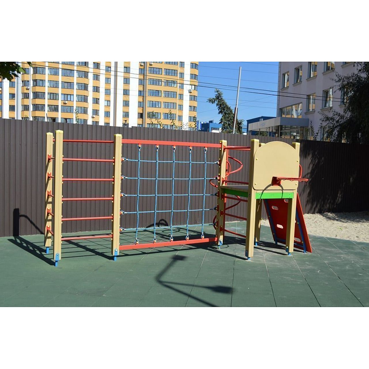 Гімнастичний комплекс "Спорт-1" призначений для розвитку у дітей координації руху, а також для занять фізичними вправами на відкритому повітрі. Гімнастичний комплекс є єдиною конструкцією, що складається з платформи, спірального спуску, прямих сходів, дошки альпініста, турніка та баскетбольного щита, які закріплені на дерев'яних брусах.
