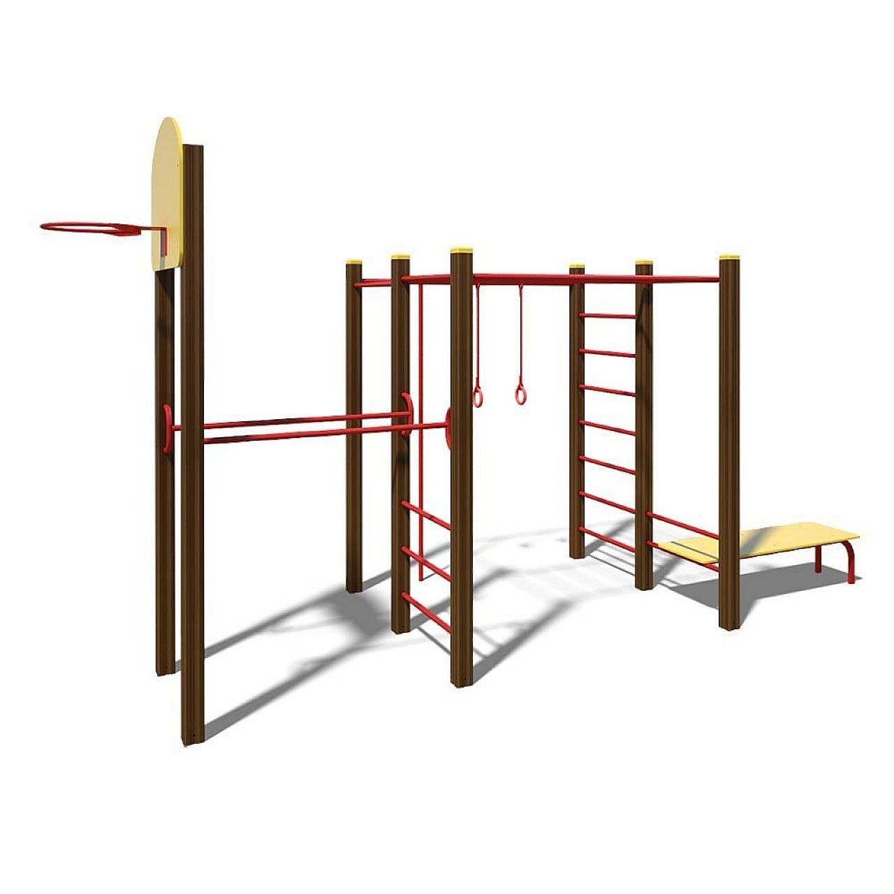 Гімнастичний комплекс "Спорт" призначений для розвитку у дітей координації руху, а також для занять фізичними вправами на відкритому повітрі. Гімнастичний комплекс є єдиною конструкцією, що складається з рукохода, прямих сходів, брусів, дошки для преса, кілець, каната, турніка та баскетбольного щита, які закріплені на дерев'яних брусах.