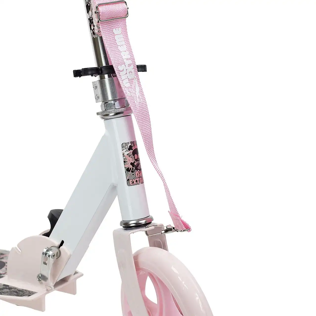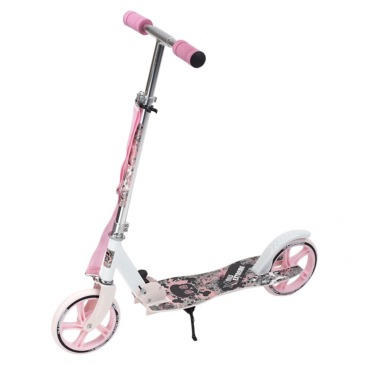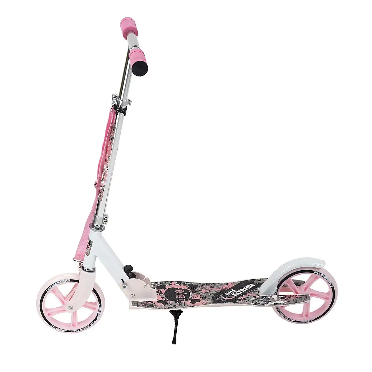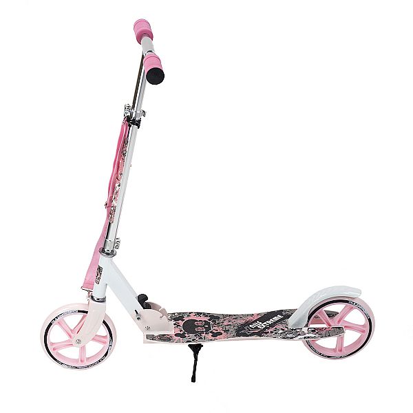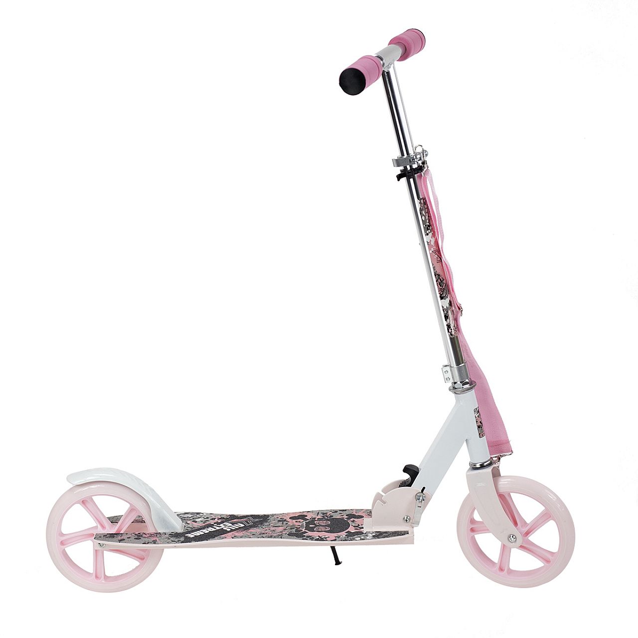 Скутер ідеально підходить для розважального катання по асфальту, бетонним покриттям і асфальтованим тротуарам. Кермо оснащений гумовими ручками, які забезпечують надійний хват. 3-ступеневе регулювання дозволяє підлаштувати його висоту під зріст користувача. Підшипники ABEC7 і великі колеса підвищують стабільність і плавність їзди, а широка платформа полегшить баланс. Крім того, ножне гальмо забезпечує максимальну безпеку під час руху.