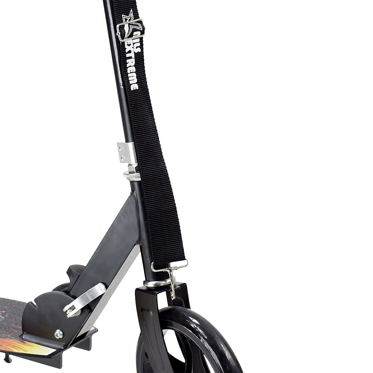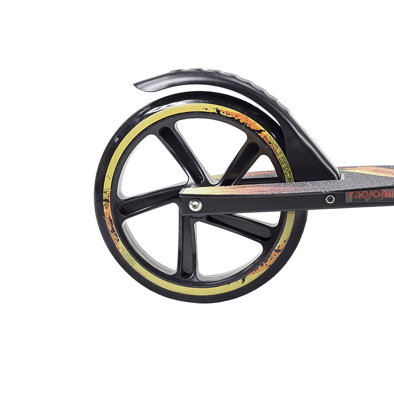 Скутер ідеально підходить для розважального катання по асфальту, бетонним покриттям і асфальтованим тротуарам. Кермо оснащений гумовими ручками, які забезпечують надійний хват. 3-ступеневе регулювання дозволяє підлаштувати його висоту під зріст користувача. Підшипники ABEC7 і великі колеса підвищують стабільність і плавність їзди, а широка платформа полегшить баланс. Крім того, ножне гальмо забезпечує максимальну безпеку під час руху.
