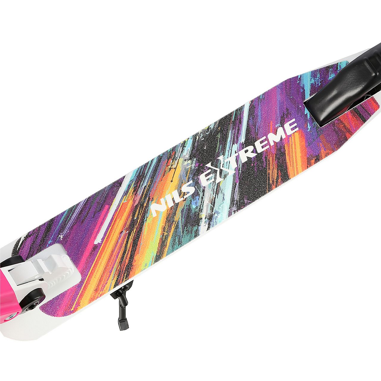 Самокат оснащений ножним гальмом, що гарантує швидке і легке гальмування під час їзди. Безпеку виробу також підвищують бризковики, які запобігають бризкам, і нековзка платформа, яка гарантує стабільне положення за кермом. Крім того, кермо оснащено прогумованими ручками, які забезпечують надійний хват і не викликають потертостей.