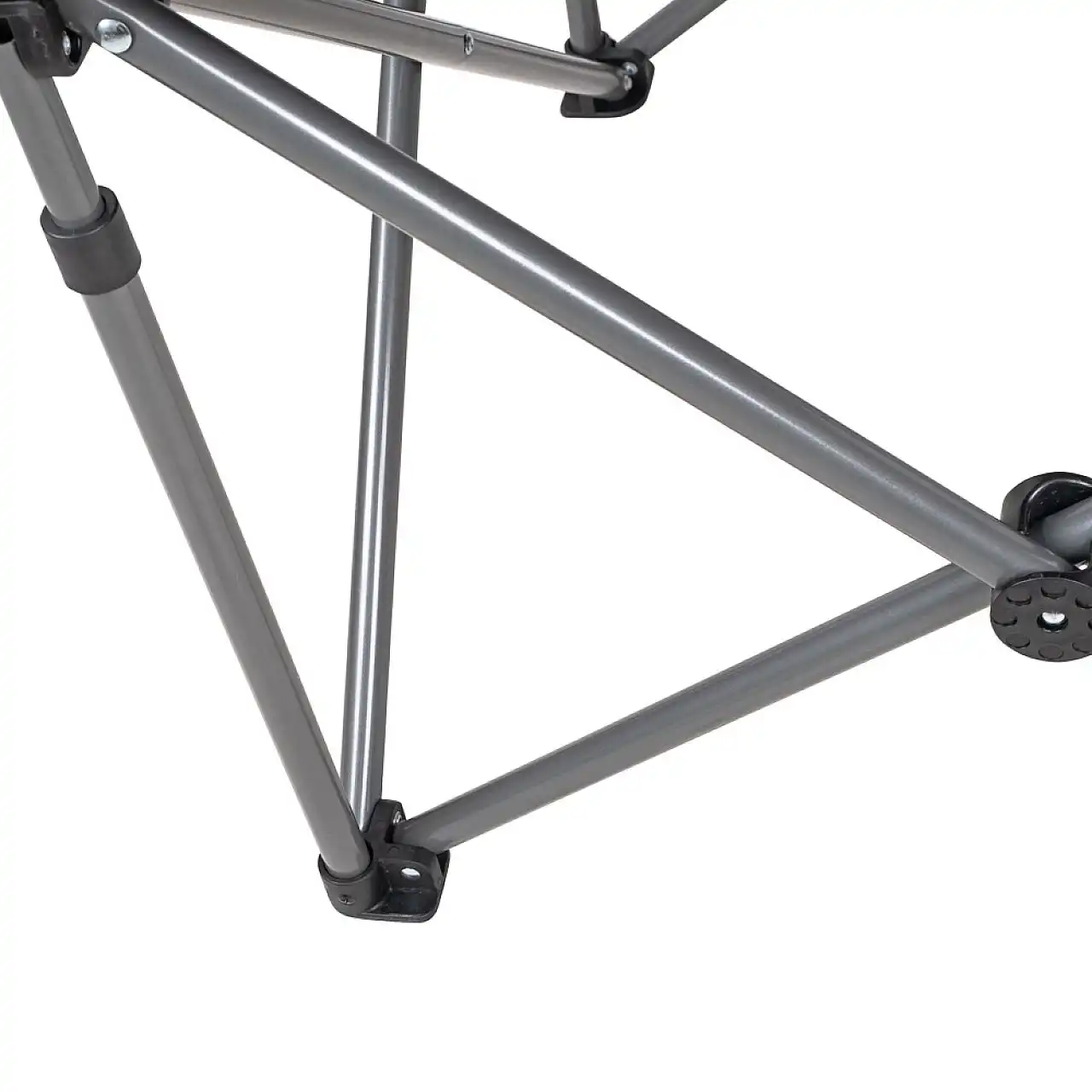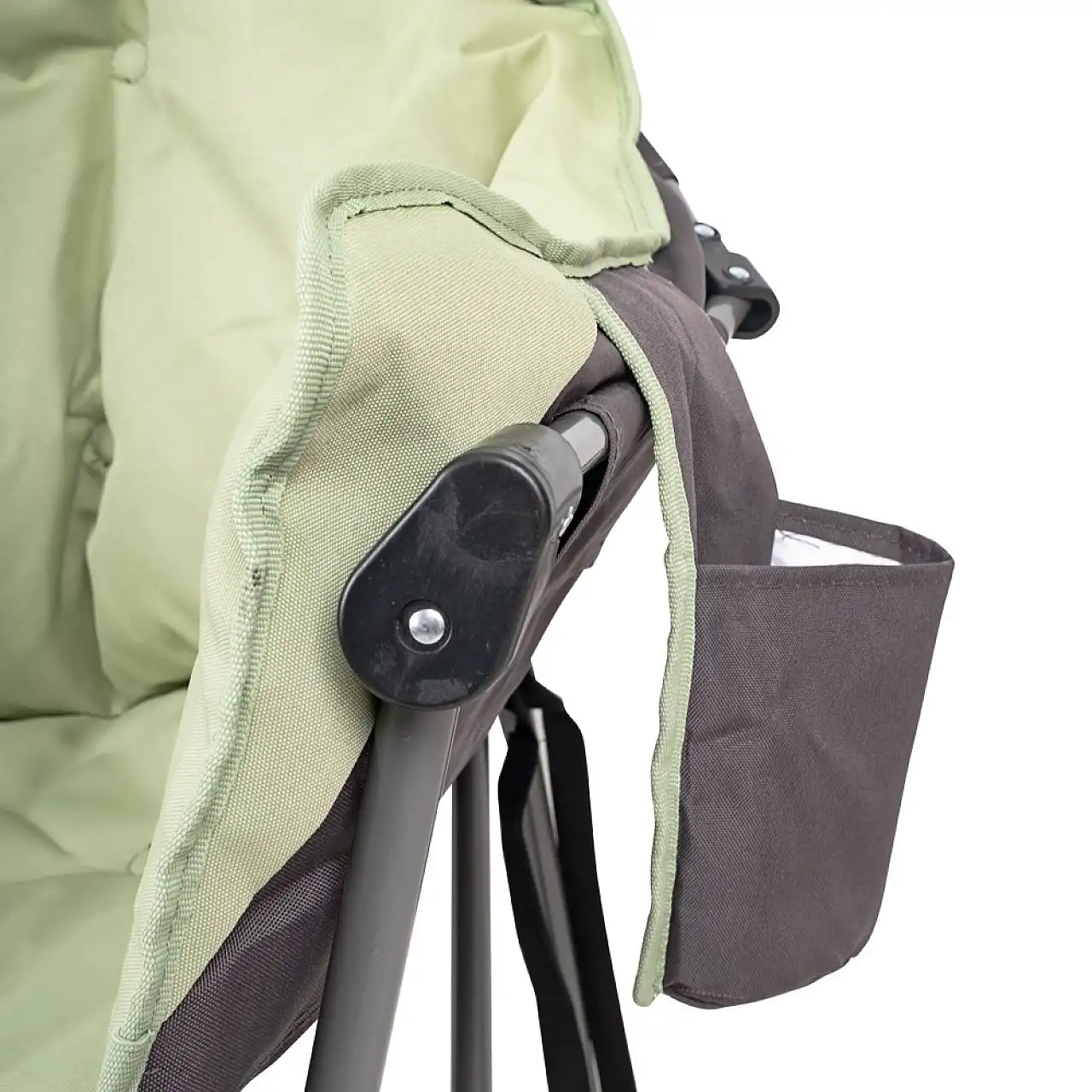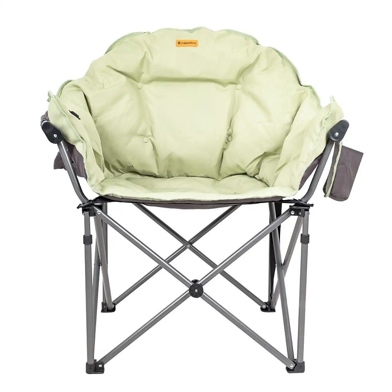 Термоізоляційна кишеня , до якої можна дістатися, вміщує пляшку з водою, склянку чи консервну банку, щоб ваш напій тривалий час залишався холодним/гарячим. Стійка сталева рама витримує до 150 кг , а сидіння достатньо велике, щоб розмістити користувачів будь-якого розміру. Ви також можете оцінити м’яку спинку.