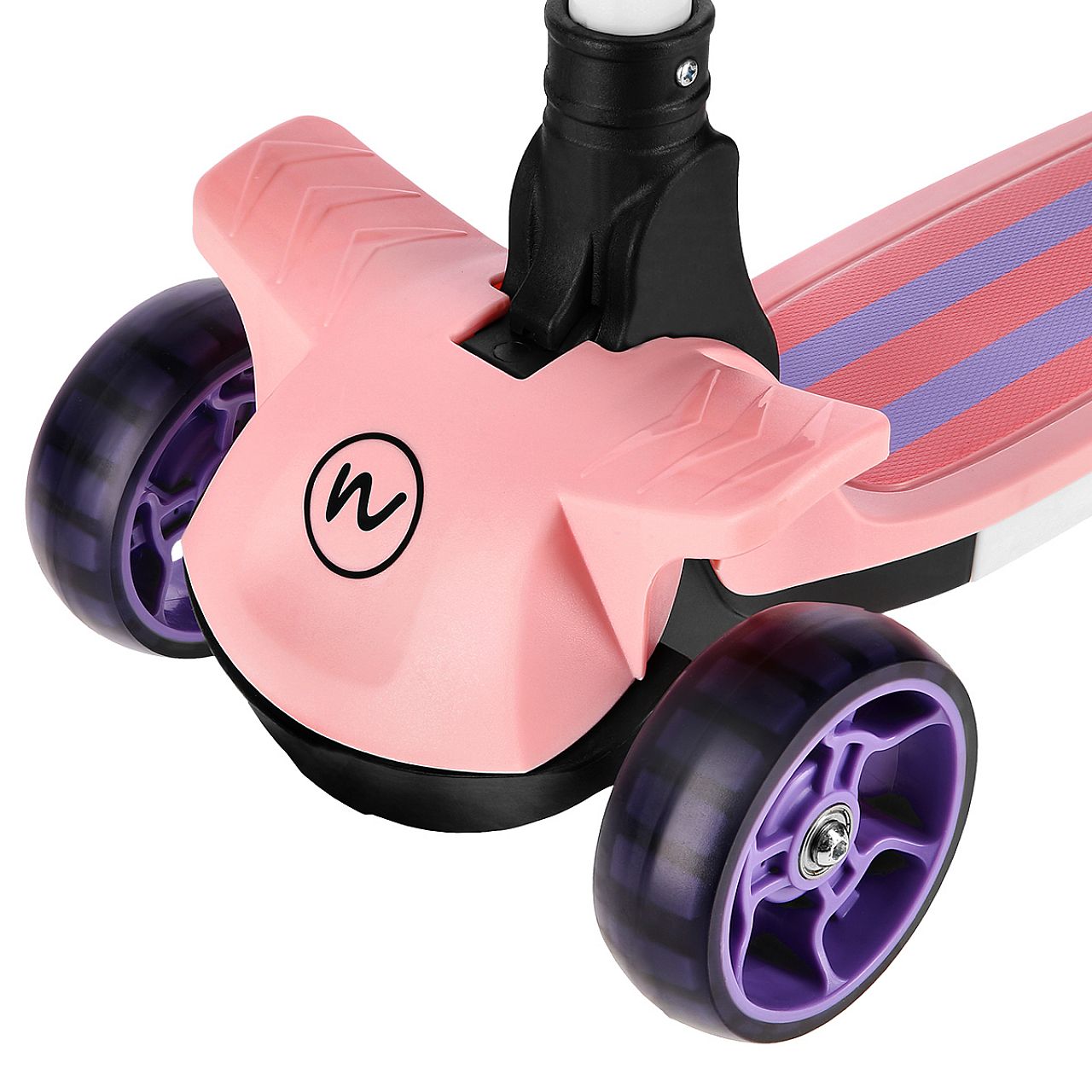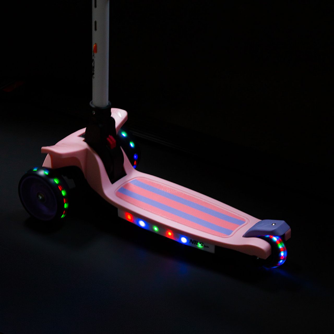 Три колеса полегшують навчання їзді на самокаті та дозволяють отримати практику. HLB10 має інтуїтивно зрозумілу систему управління. Кермо в основному використовується для підтримки рівноваги, а маневри виконуються шляхом балансування та нахилу керма в одну чи іншу сторону. Це рішення ідеально підходить для найменших любителів водіння. Завдяки регульованому керму ми можемо легко налаштувати обладнання під зріст дитини, що також дозволяє насолоджуватися самокатом довше. Відмінною перевагою HLB10 є світиться платформа і світяться колеса. На додаток до чудового візуального ефекту, вони забезпечують багато розваг для дітей і, перш за все, роблять користувача більш помітним. Скутер оснащений ножним гальмом, що підвищує безпеку під час їзди, а високий комфорт забезпечують підшипники класу ABEC7.
