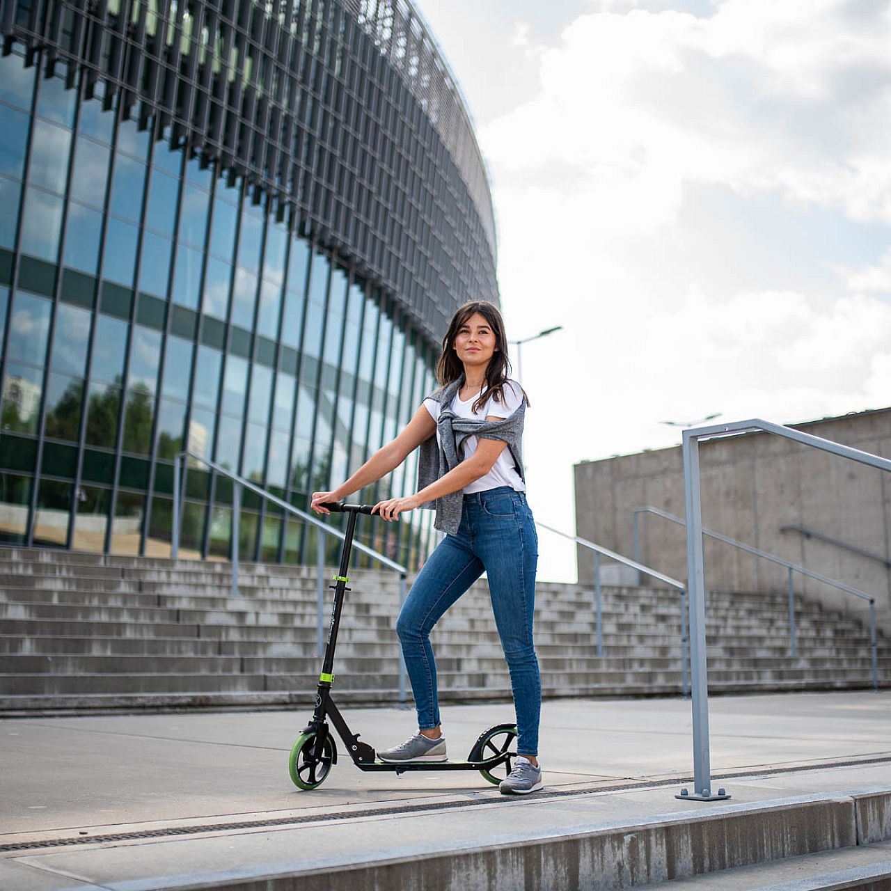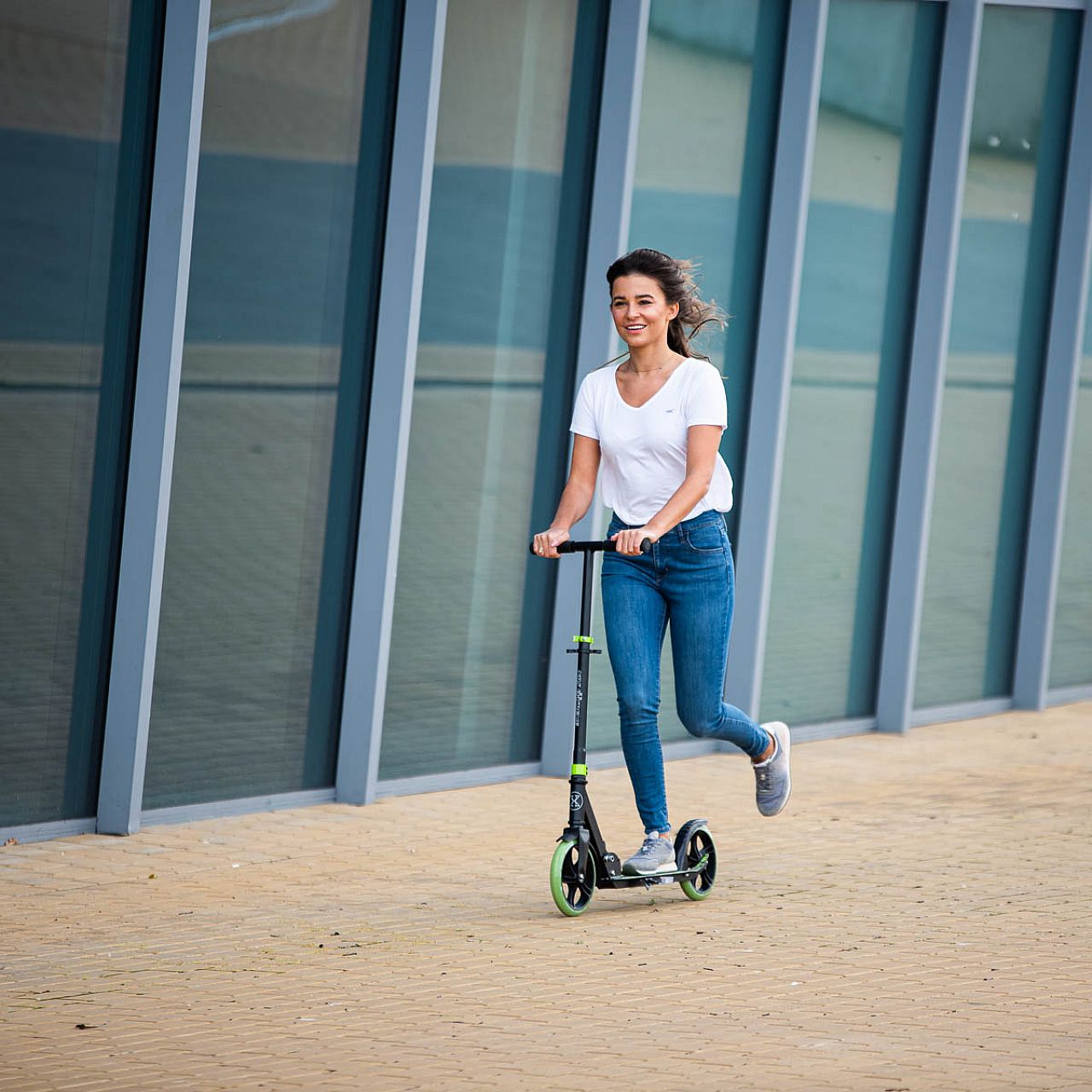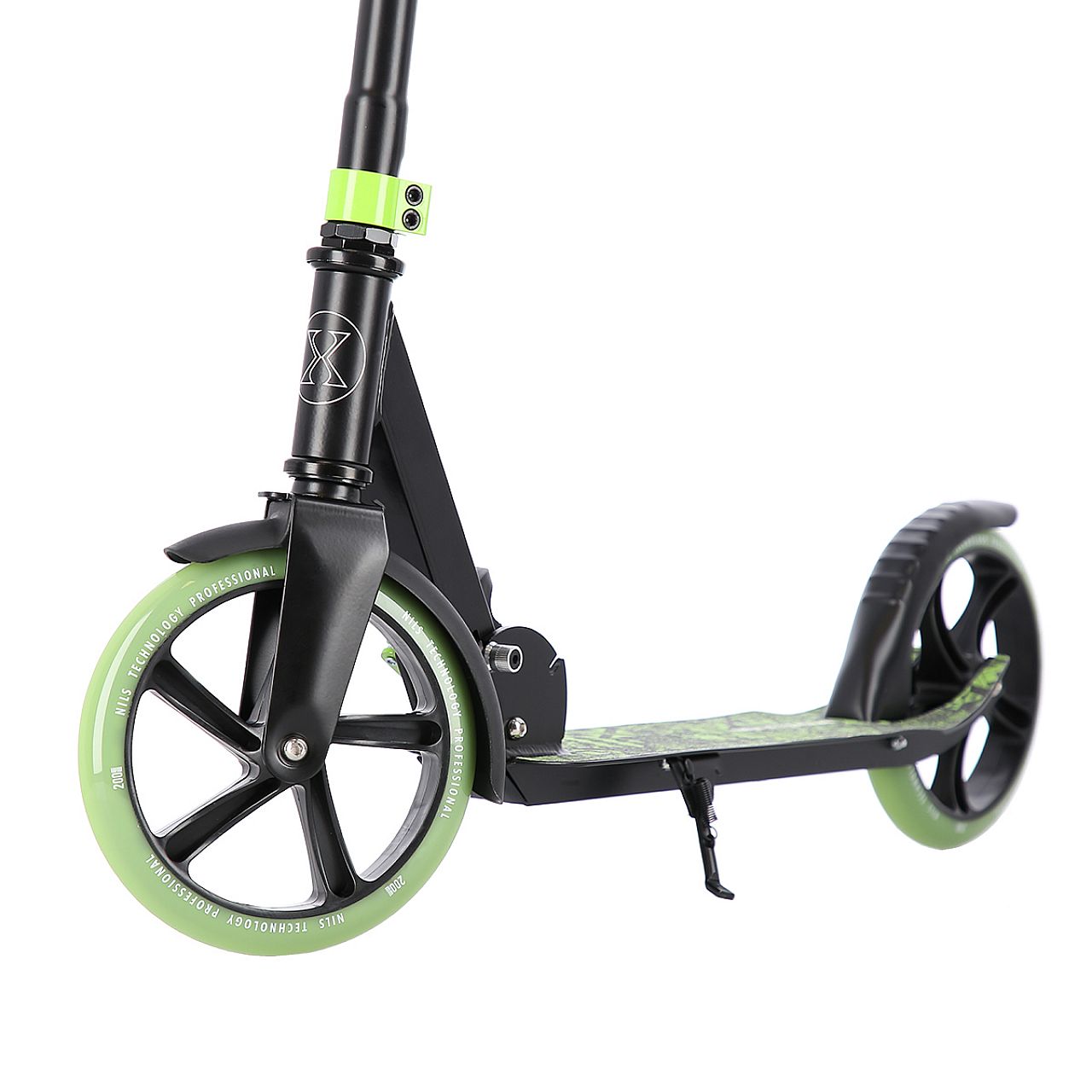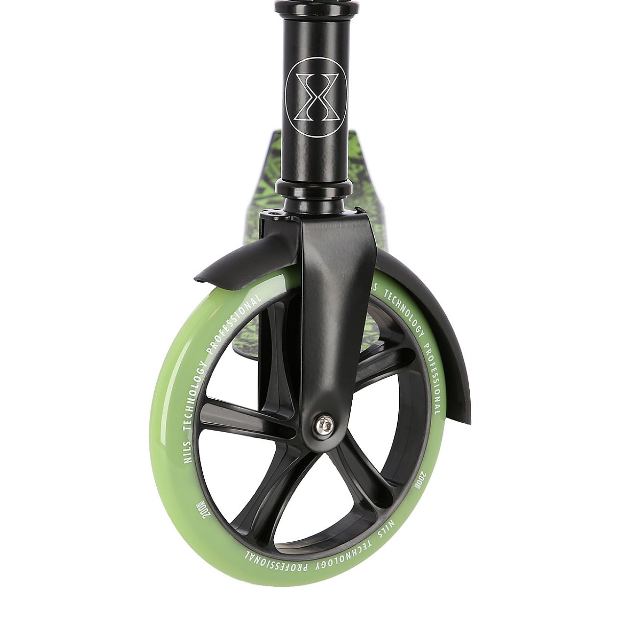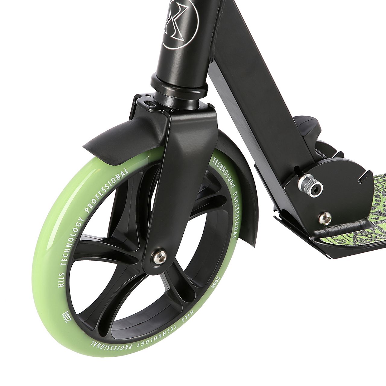 HM2002 має великі колеса (200 мм / 82A) і висококласні підшипники ABEC-7, що робить скутер ідеальним для пересування по нерівних поверхнях, як по асфальту, так і по лісових дорогах.