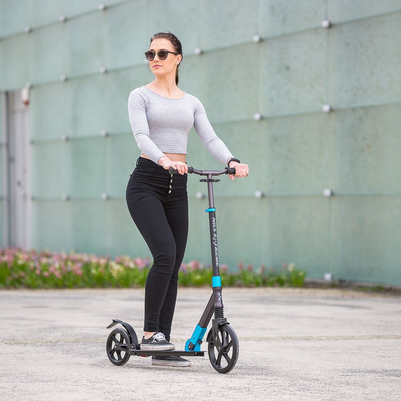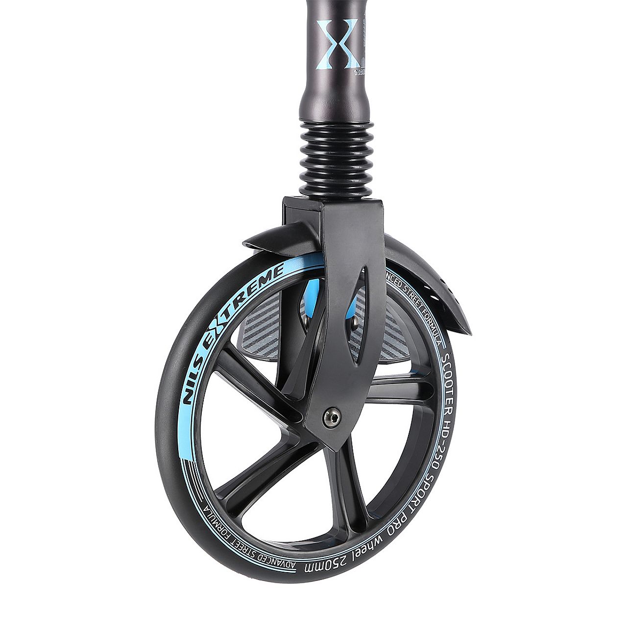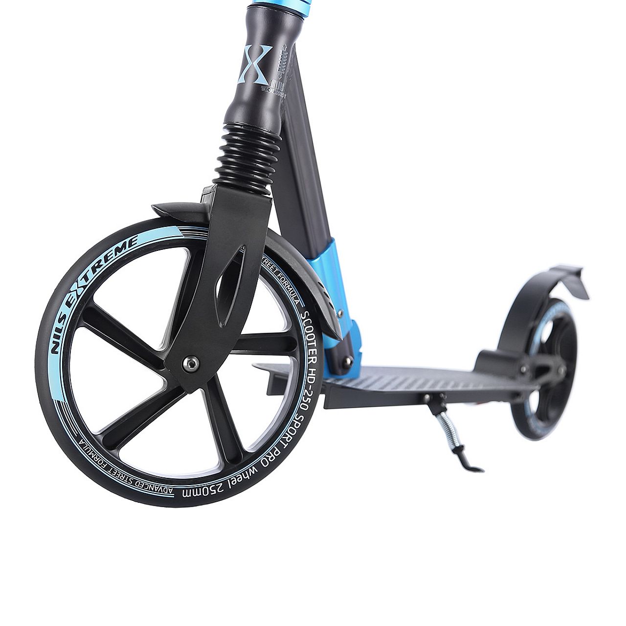 Його безперечною перевагою є сучасний дизайн. Характерною особливістю виробу Nils Extreme є два амортизатори - передній вертикальний і задній горизонтальний. Вони забезпечують більший комфорт під час водіння, мінімізують вібрацію та поглинають удари. Завдяки цьому виріб дуже добре підходить для пересування по нерівних поверхнях.