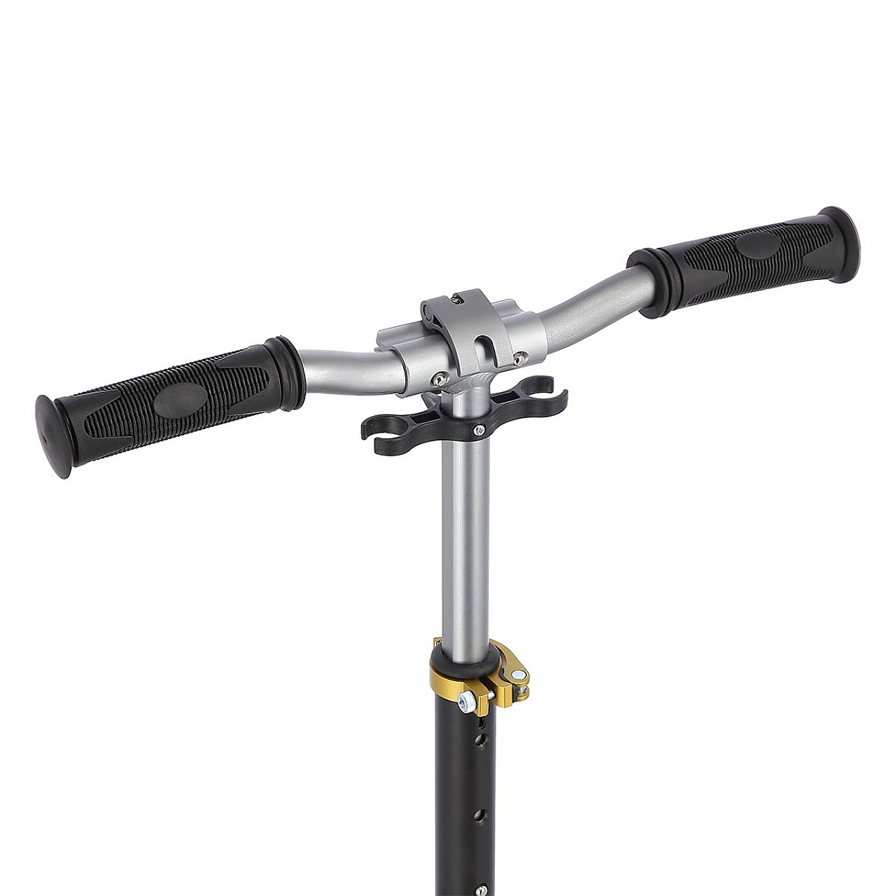 Він виготовлений з алюмінію, що робить його дуже легким і міцним. Це дозволить використовувати техніку дуже довго, а завдяки малій вазі транспортування не буде проблемою. Тим більше, що самокат дуже легко складається.