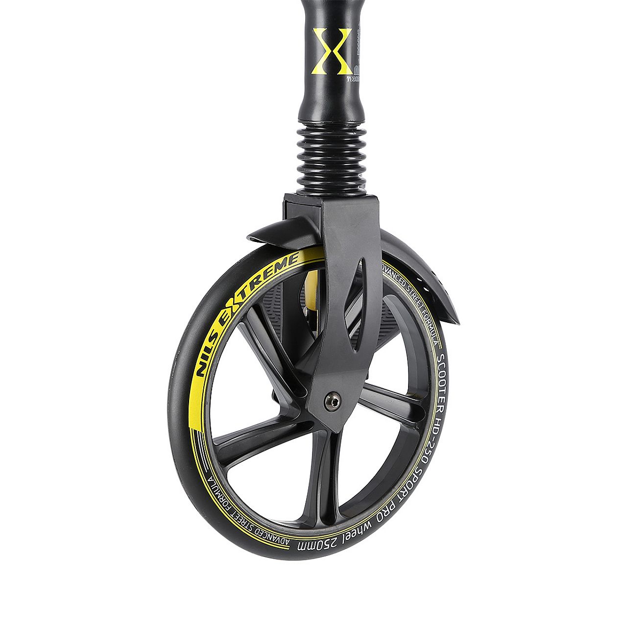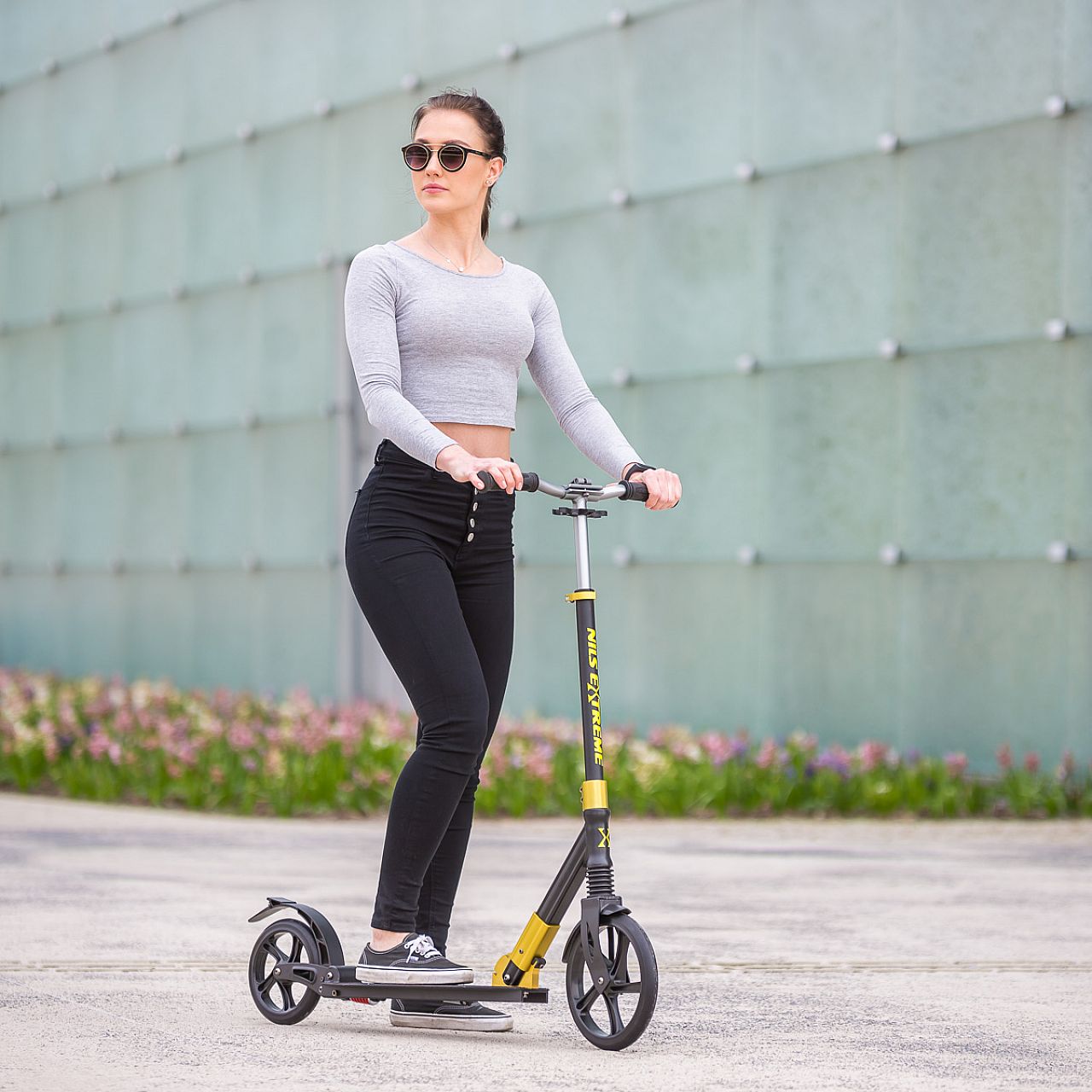 Його безперечною перевагою є сучасний дизайн. Характерною особливістю виробу Nils Extreme є два амортизатори - передній вертикальний і задній горизонтальний. Вони забезпечують більший комфорт під час водіння, мінімізують вібрацію та поглинають удари. Завдяки цьому виріб дуже добре підходить для пересування по нерівних поверхнях.
