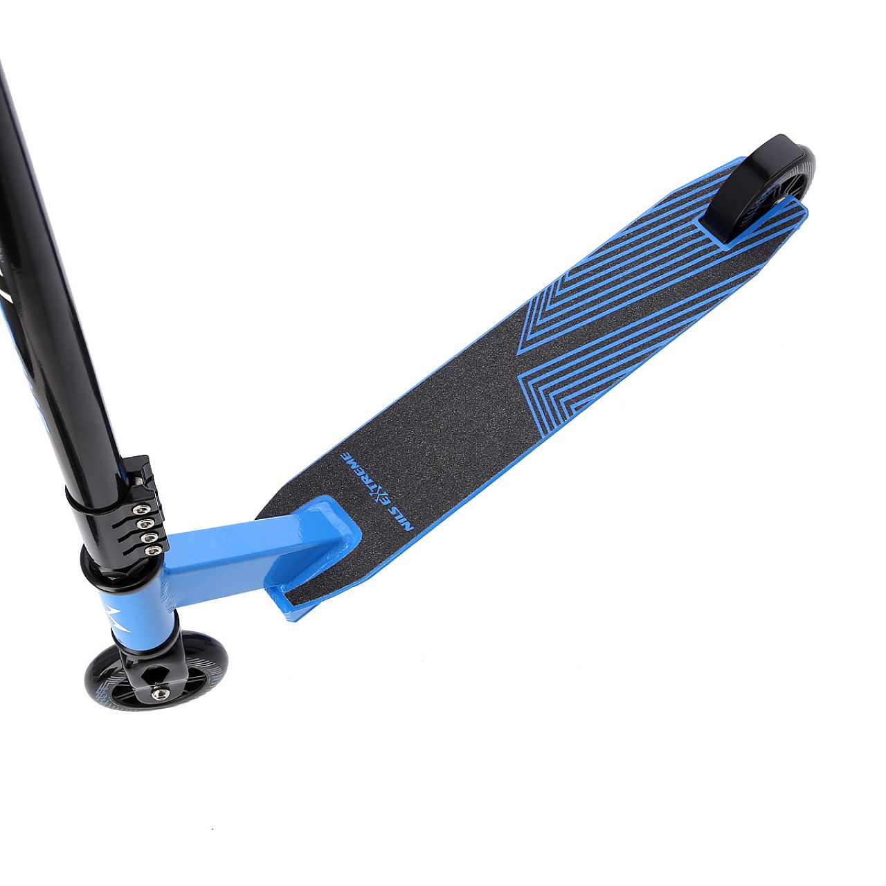 HS103 ідеально підходить для асфальтових поверхонь і асфальтованих тротуарів. Колеса 100 x 24 мм і підшипники класу ABEC9 забезпечують оптимальну продуктивність обладнання та, отже, чудову ефективність роботи. У свою чергу, заднє ножне гальмо забезпечує максимальну безпеку використання і дозволяє негайно зупинити скутер. Покупці, які вибирають цю модель, звертають увагу на її міцність і зручність використання. Завдяки використанню матеріалів найвищої якості, самокат Nils Extreme практично неможливо знищити.