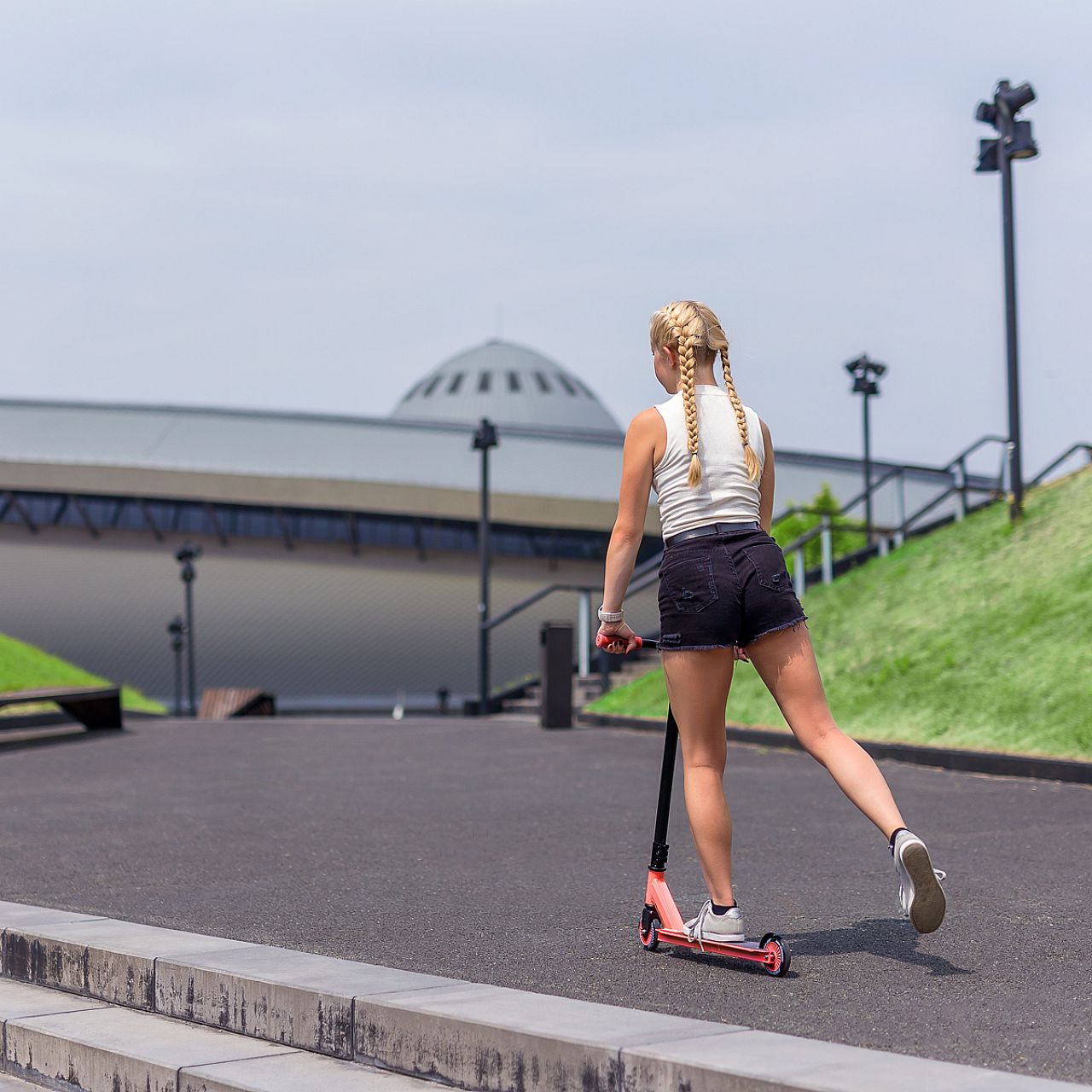 HS106 ідеально підходить для асфальтових покриттів, скейт-парків і тротуарів. Колеса 100 x 24 мм і підшипники класу ABEC7 дозволяють здійснювати довгі поїздки з невеликими зусиллями. Ножне гальмо заднього крила забезпечує безпечне використання та дозволяє легко зупинити скутер. Покупці, які вибирають цю модель, звертають увагу на її міцність і зручність використання. Завдяки використанню високоякісних матеріалів самокат Nils Extreme прослужить роками.