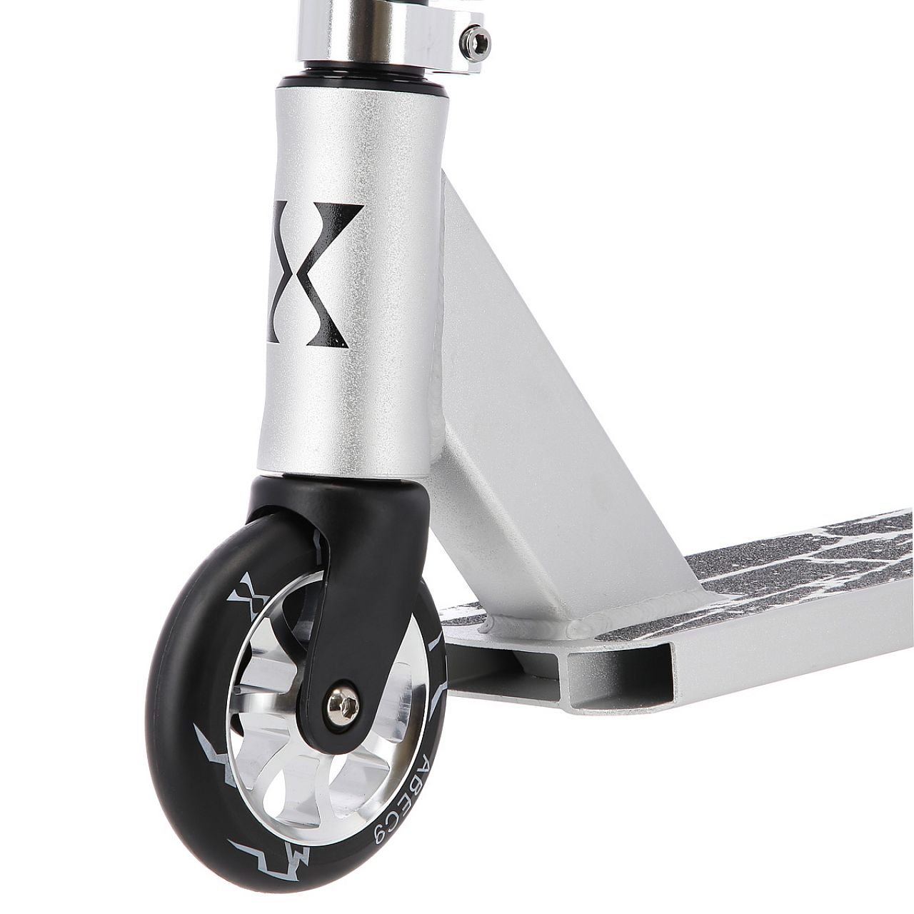 HS110 ідеально підходить для асфальтових поверхонь і асфальтованих тротуарів. Колеса 110 x 24 мм і підшипники класу ABEC9 забезпечують оптимальну продуктивність обладнання та, отже, чудову ефективність роботи. У свою чергу, заднє ножне гальмо забезпечує максимальну безпеку використання і дозволяє негайно зупинити скутер. Покупці, які вибирають цю модель, звертають увагу на її міцність і зручність використання. Завдяки використанню матеріалів найвищої якості, самокат Nils Extreme практично неможливо знищити.