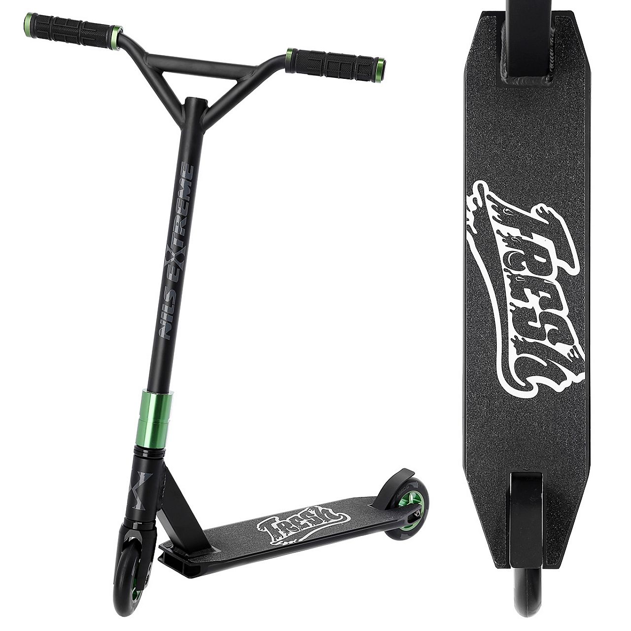 HS115 ідеально підходить для асфальтових поверхонь і асфальтованих тротуарів. Колеса 110 x 24 мм і підшипники класу ABEC9 забезпечують оптимальну продуктивність обладнання та, отже, чудову ефективність роботи. У свою чергу, заднє ножне гальмо забезпечує максимальну безпеку використання і дозволяє негайно зупинити скутер. Покупці, які вибирають цю модель, звертають увагу на її міцність і зручність використання. Завдяки використанню матеріалів найвищої якості, самокат Nils Extreme практично неможливо знищити.
