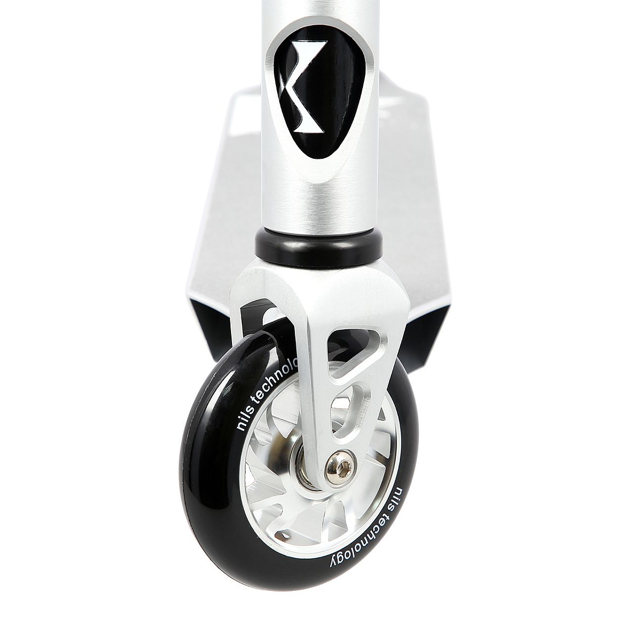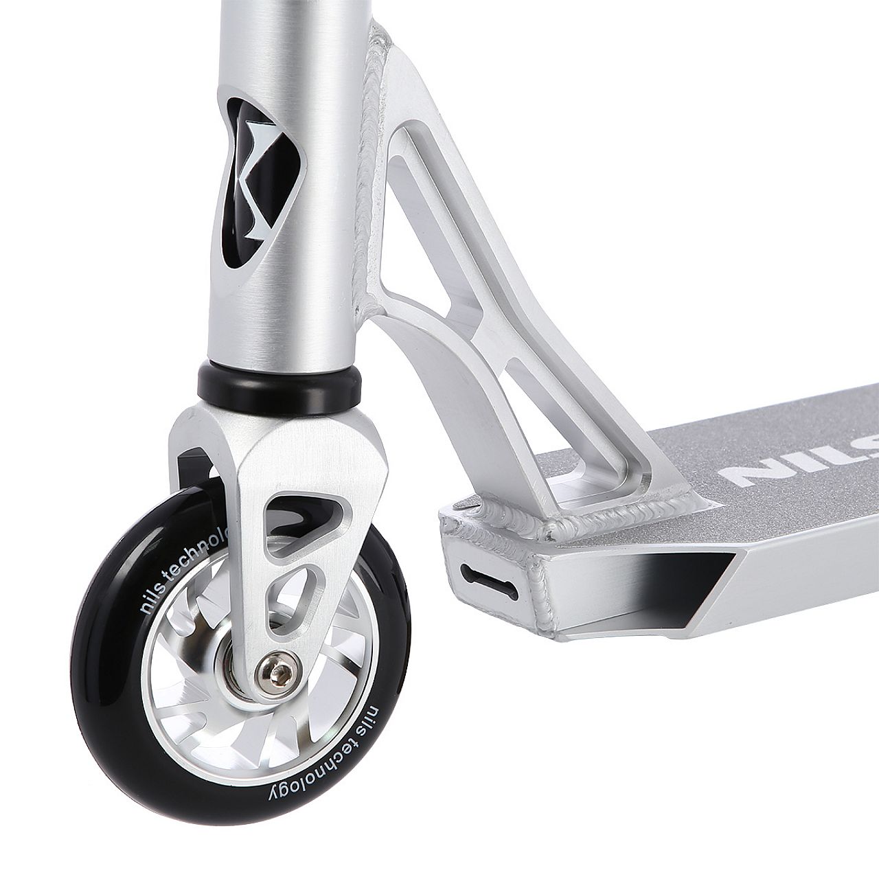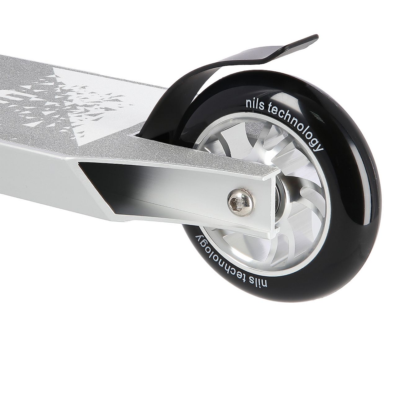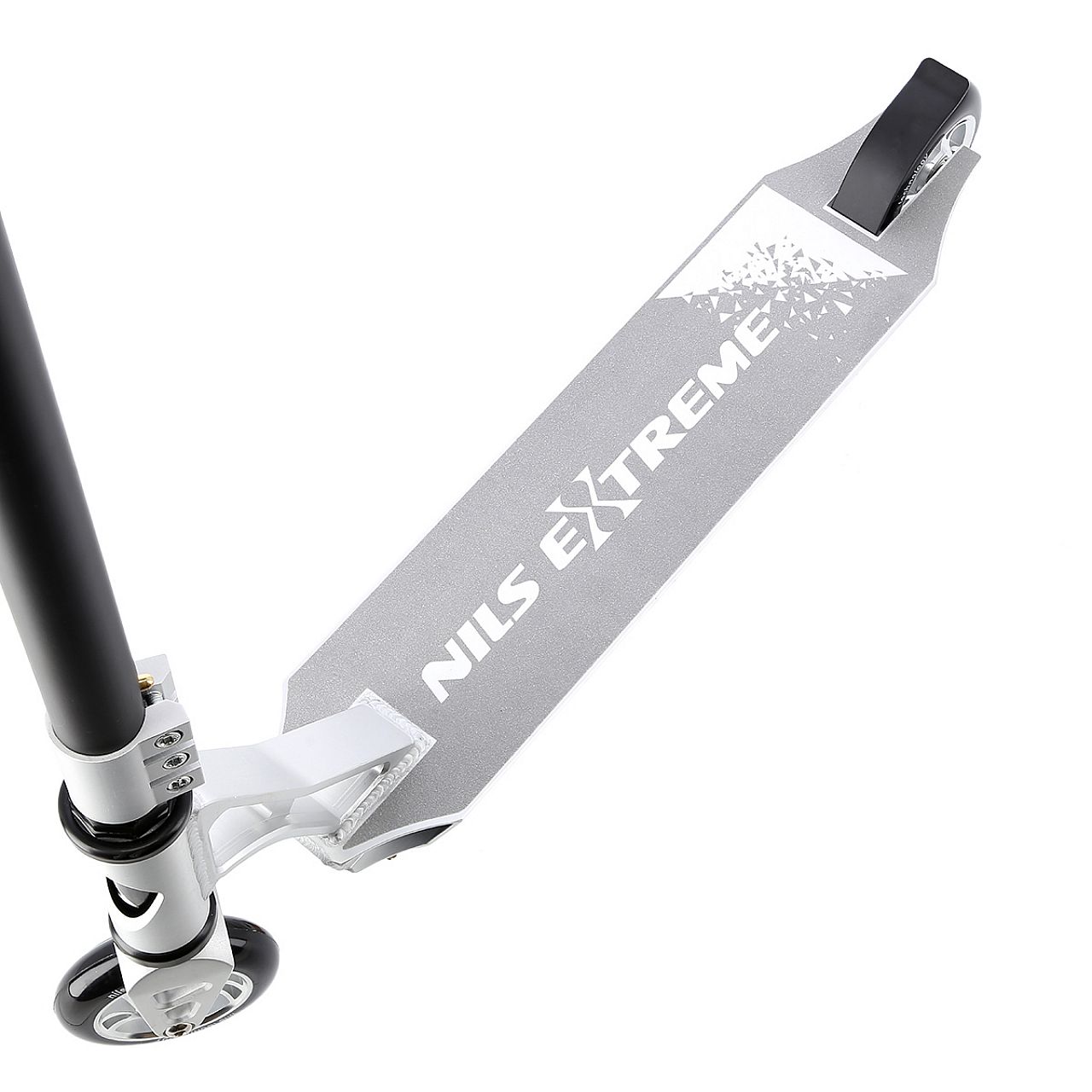 HS120 ідеально підходить для асфальтових покриттів, скейт-парків і тротуарів. Колеса 100 x 24 мм і підшипники класу ABEC9 дозволяють здійснювати довгі поїздки з невеликими зусиллями. Ножне гальмо заднього крила забезпечує безпечне використання та дозволяє легко зупинити скутер. Покупці, які вибирають цю модель, звертають увагу на її міцність і зручність використання. Завдяки використанню високоякісних матеріалів самокат Nils Extreme прослужить роками.