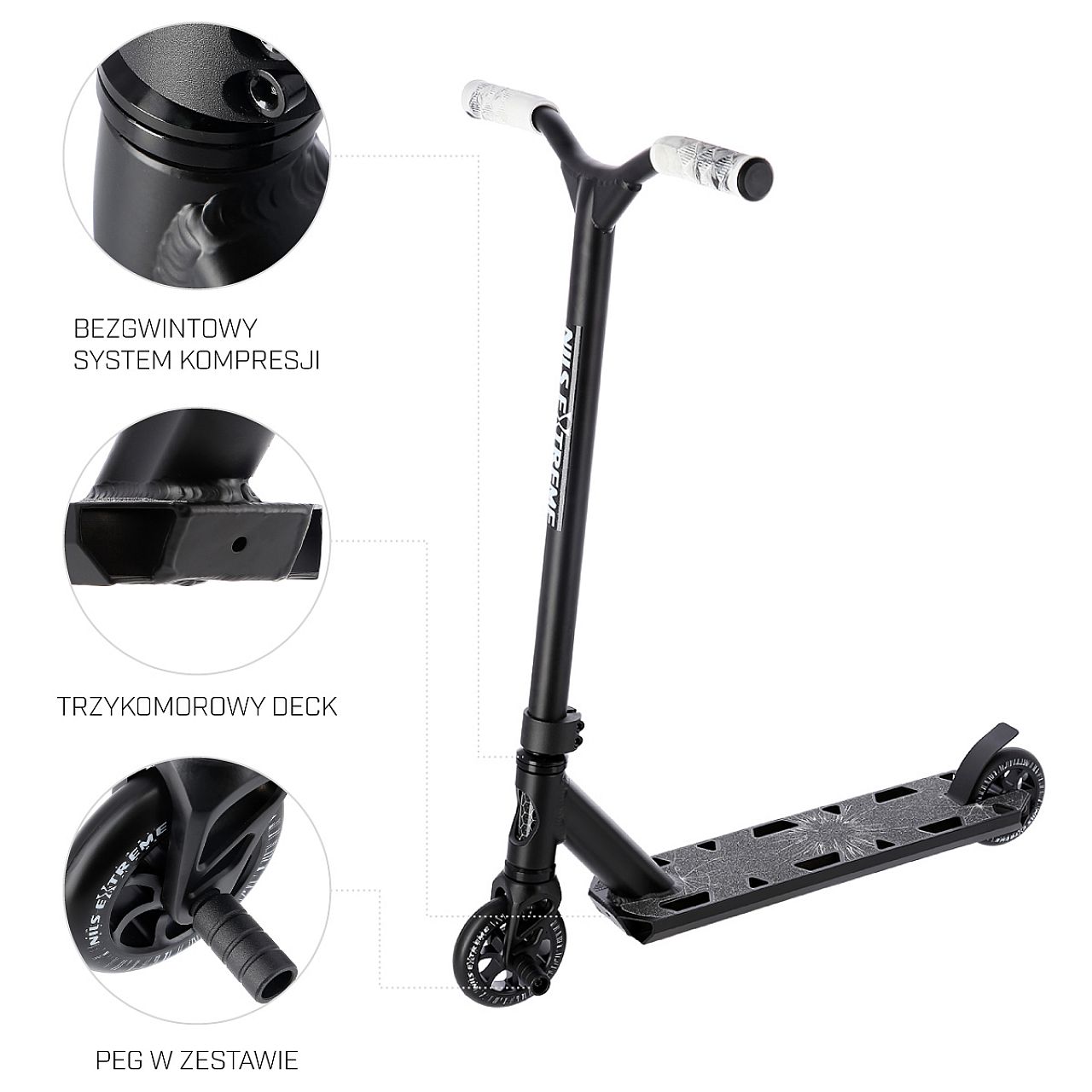 HS200 ідеально підходить для асфальтових поверхонь, скейт-парків і тротуарів. Колеса 110 x 24 мм і підшипники класу ABEC9 дозволяють здійснювати довгі поїздки з невеликими зусиллями. Ножне гальмо заднього крила забезпечує безпечне використання та дозволяє легко зупинити скутер. Покупці, які вибирають цю модель, звертають увагу на її міцність і зручність використання. Завдяки використанню високоякісних матеріалів самокат Nils Extreme прослужить роками.