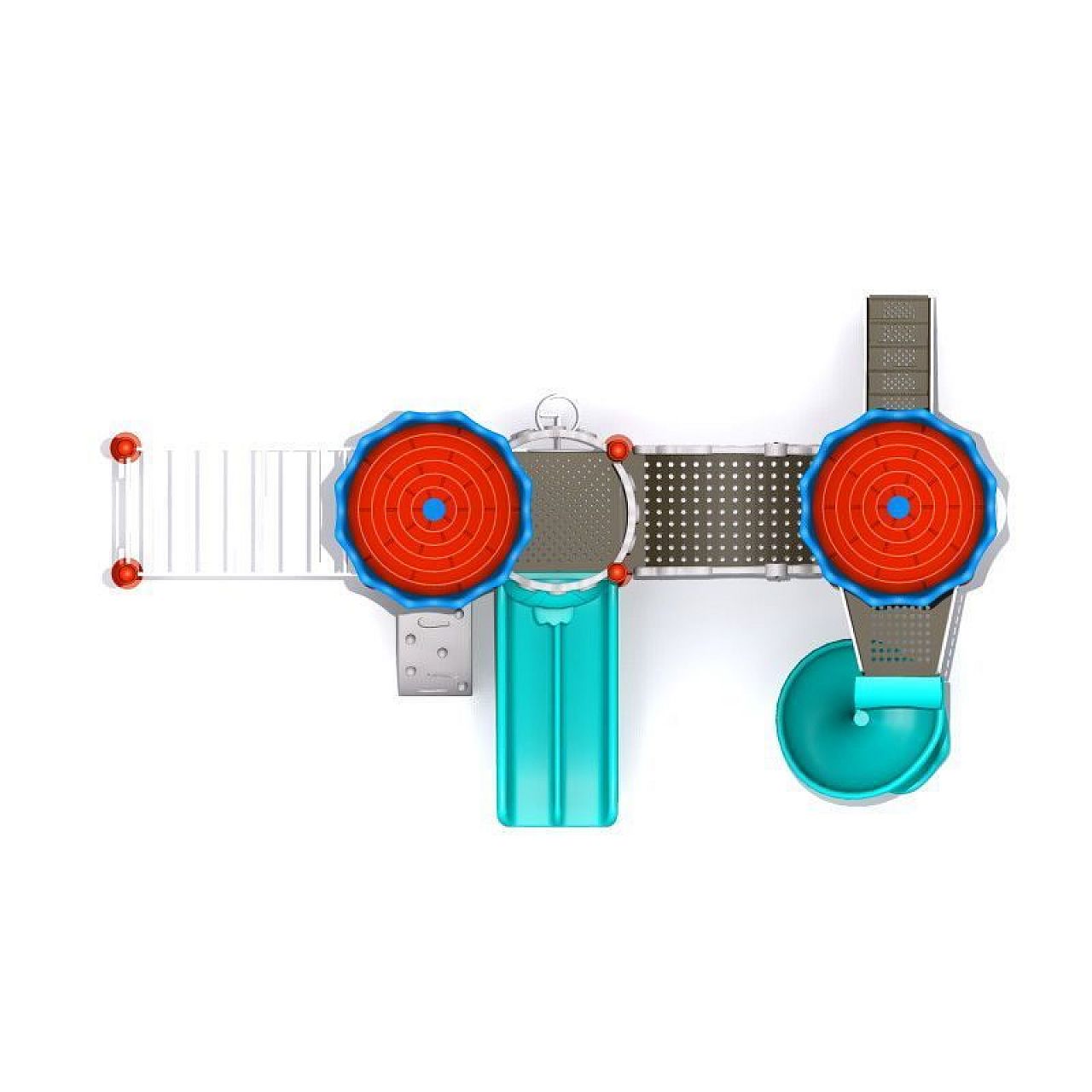 Деталі конструкції не містять гострих головок, що постійно зменшує можливість з’єднання різних трав Вашими детьми во время завлечений. Крім цього всі елементи закриті особливою безпечною порошковою краской, яка не тільки захищає комплекс від коррозії і вигорання на сіль, але привертає увагу детишек з моїми строкатими насиченими і квітами.