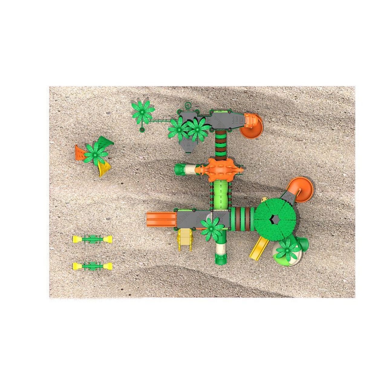 Деталі конструкції не містять гострих кутів, що суттєво зменшує можливість отримання різних трав вашими дітьми під час розваг. Крім цього, всі елементи покриті спеціальною безпечною порошковою фарбою, яка не тільки захищає комплекс від корозії та вигоряння на сонці, але привертає увагу дітлахів своїми різноманітними насиченими квітами.