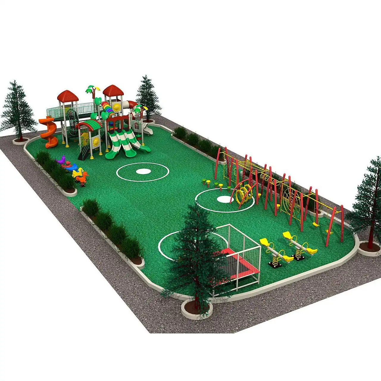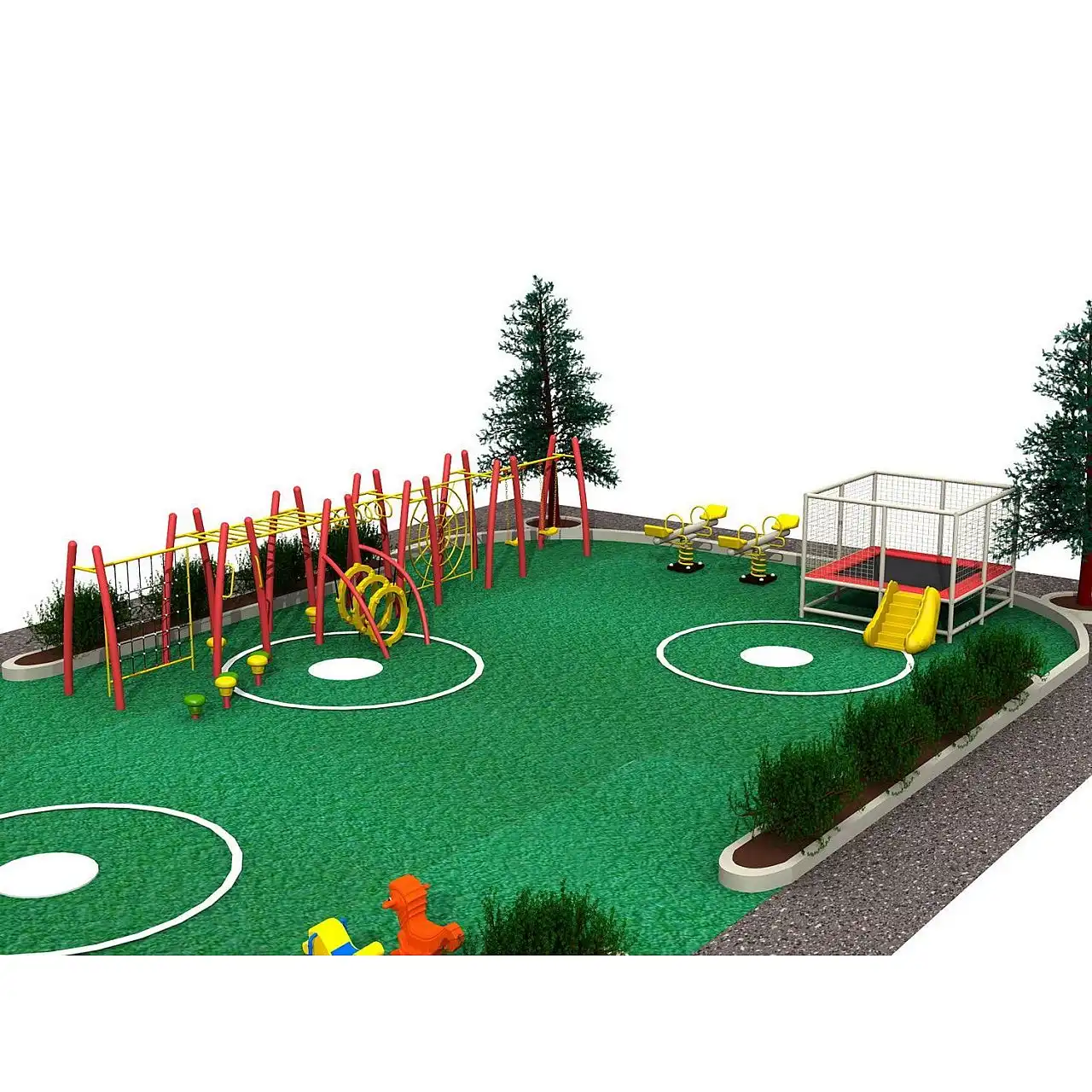 Ми рекомендуємо забезпечити буферну зону шириною 1,5 м по всьому периметру конструкції дитячого майданчика для забезпечення максимального комфорту та безпеки дітей, які грають на такому майданчику.