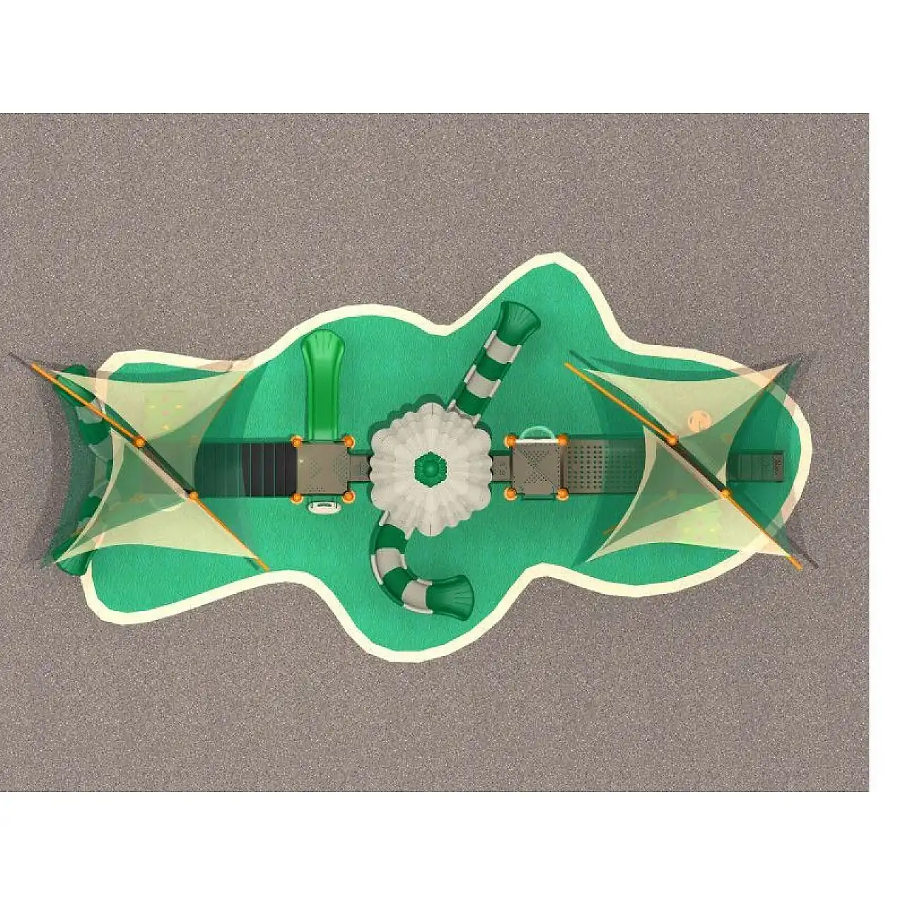 Ми рекомендуємо забезпечити буферну зону шириною 1,5 м по всьому периметру конструкції дитячого майданчика для забезпечення максимального комфорту та безпеки дітей, які грають на такому майданчику.