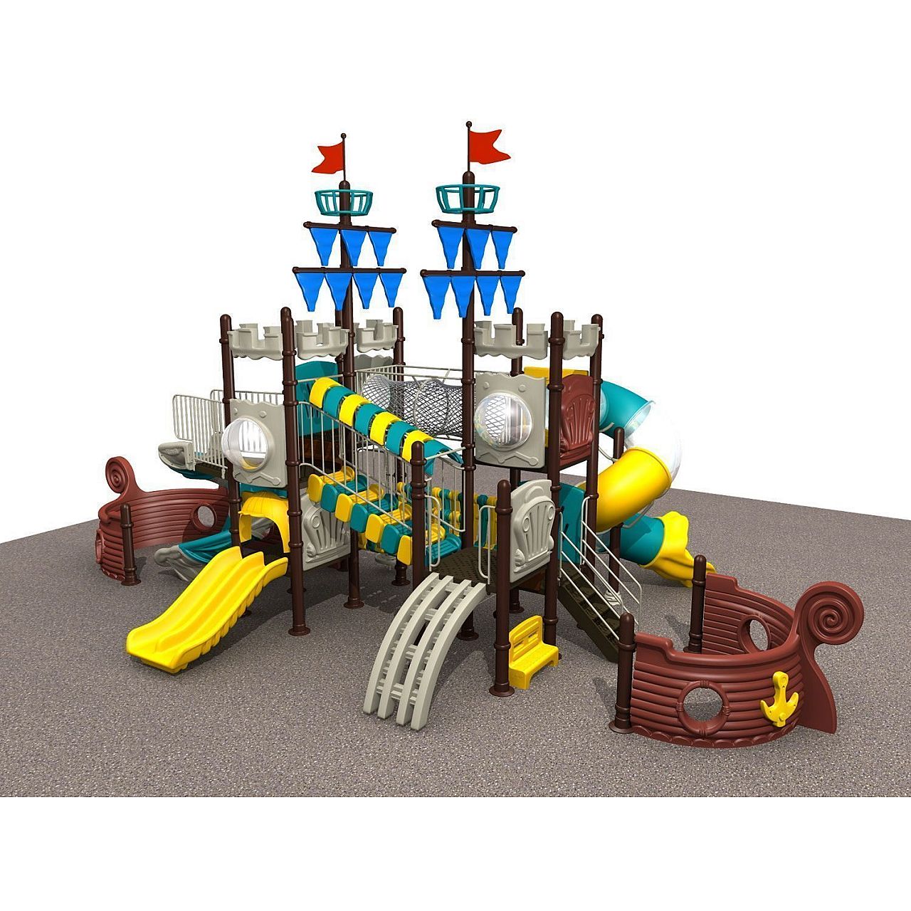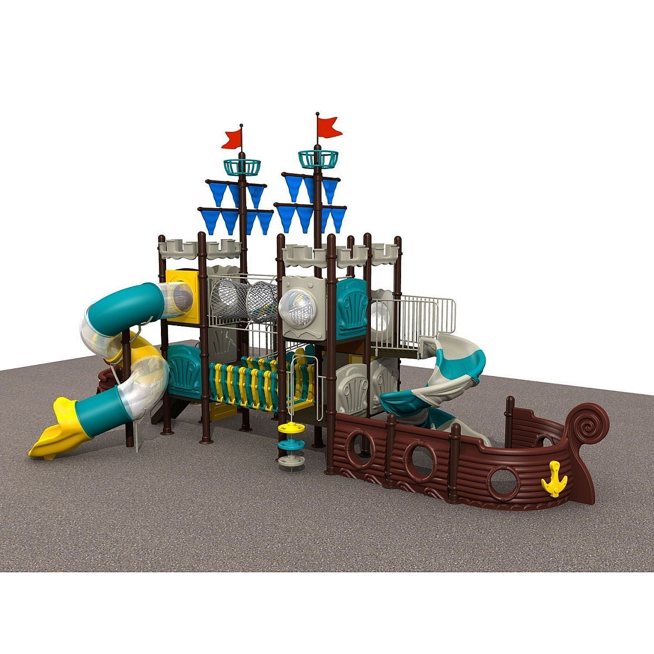 Дитячий ігровий комплекс Піратський корабель HDSHD1256 ви легко можете розташувати на свіжому повітрі - на дитячому сараї, у дворіку школи або дошкільного закладу, а також на ярмарках і в інших центрах.