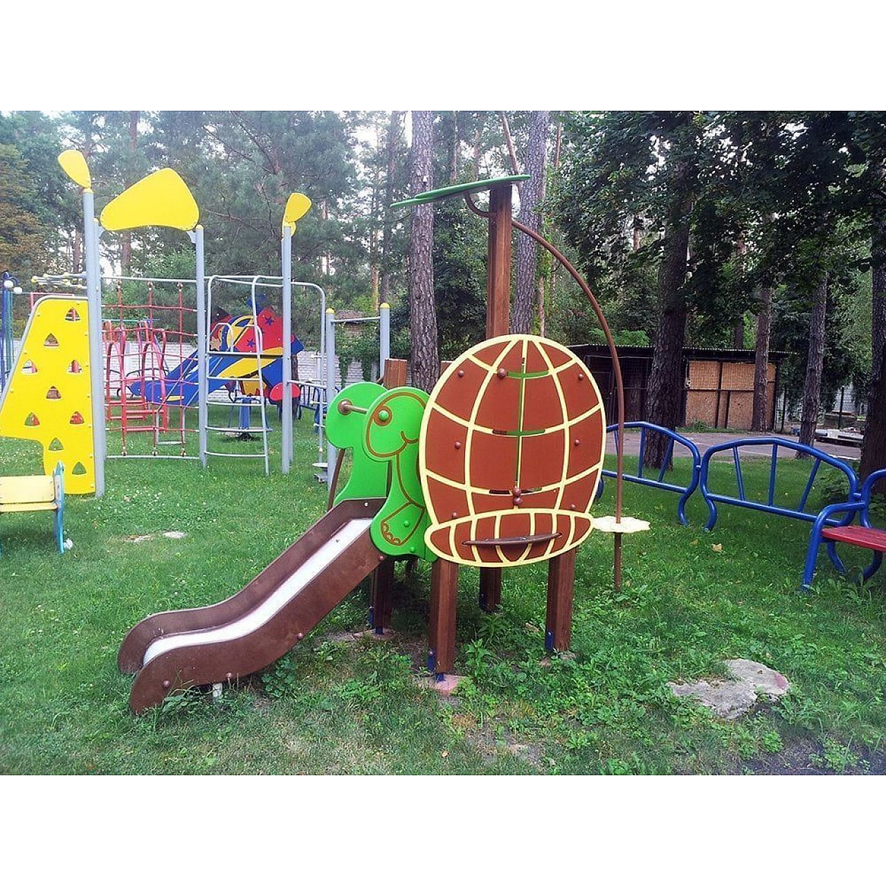 Ігровий комплекс «Ручек-2» призначений для спортивних та захоплюючих ігор під відкритим небом. Комплекс "Черепах" для ігрових фізичних навантажень на відкритому повітрі. Комплекс складається з майданчика, встановленого на спеціальних підставках.