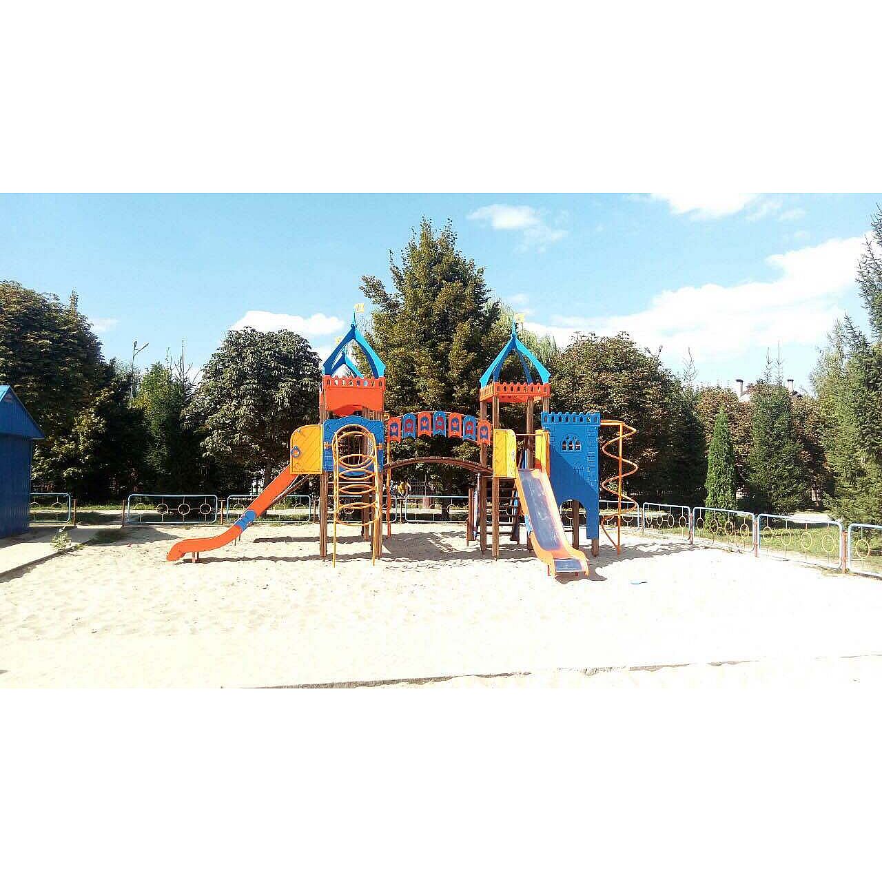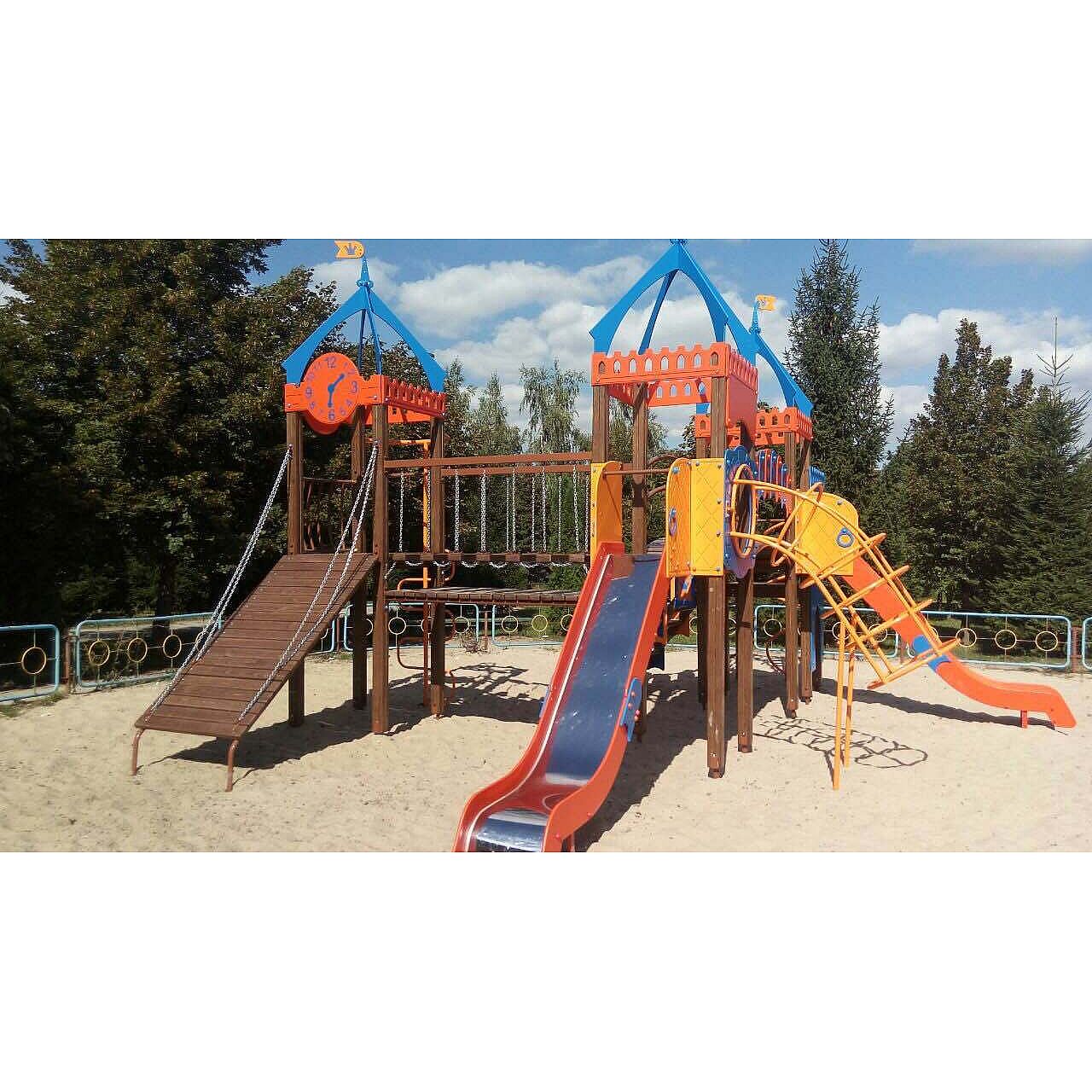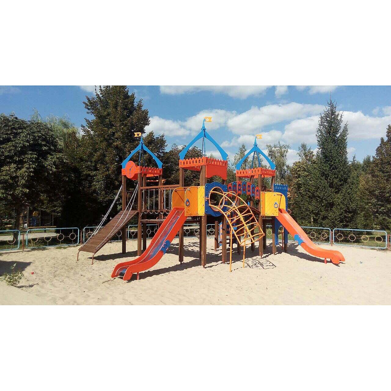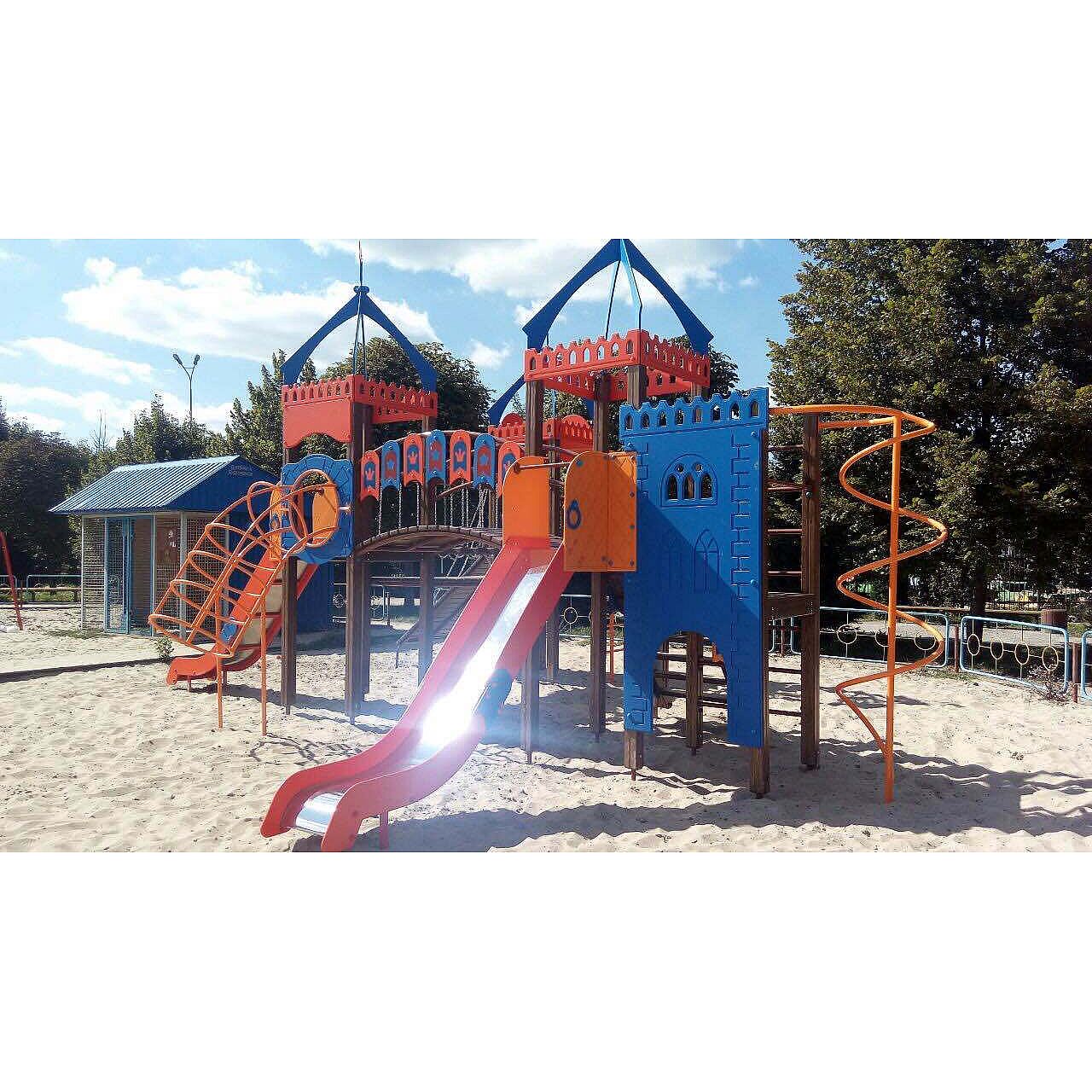 Ігровий комплекс «Замок-М» призначений для ігрових фізичних занять на відкритому повітрі. Комплекс складається з трьох платформ, встановлених на стійках на висоті 1,5 метра, з’єднаних між собою різними конфігураціями. Крім переходів до приєднання приєднуються підйоми і пуски.