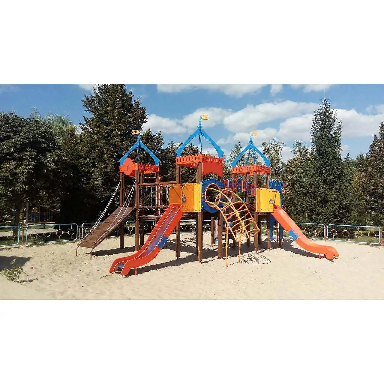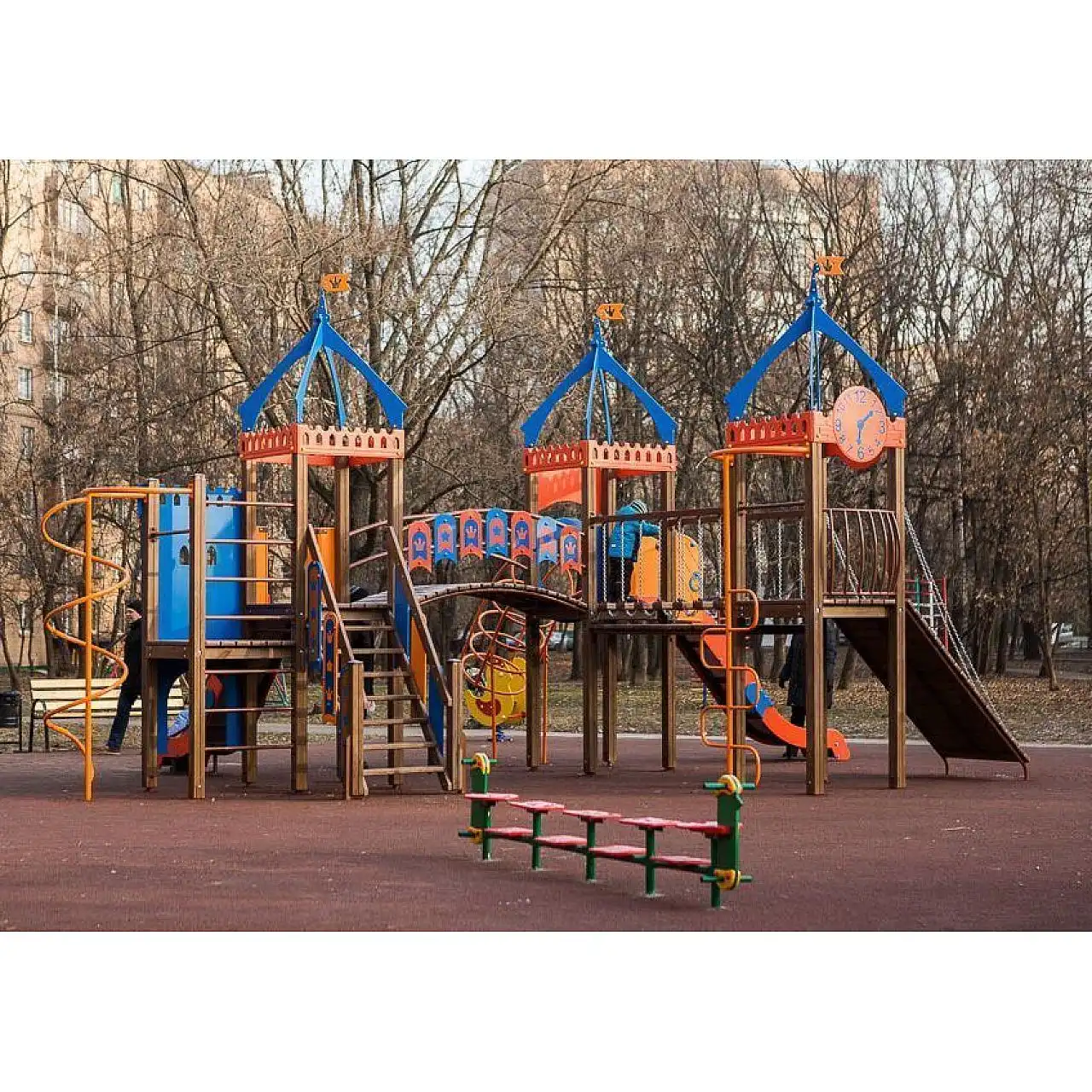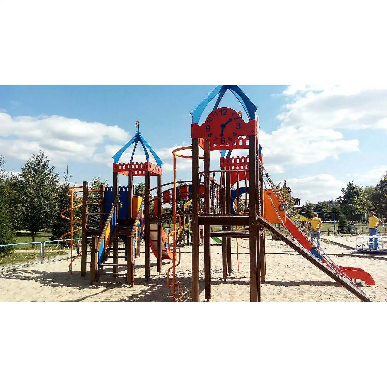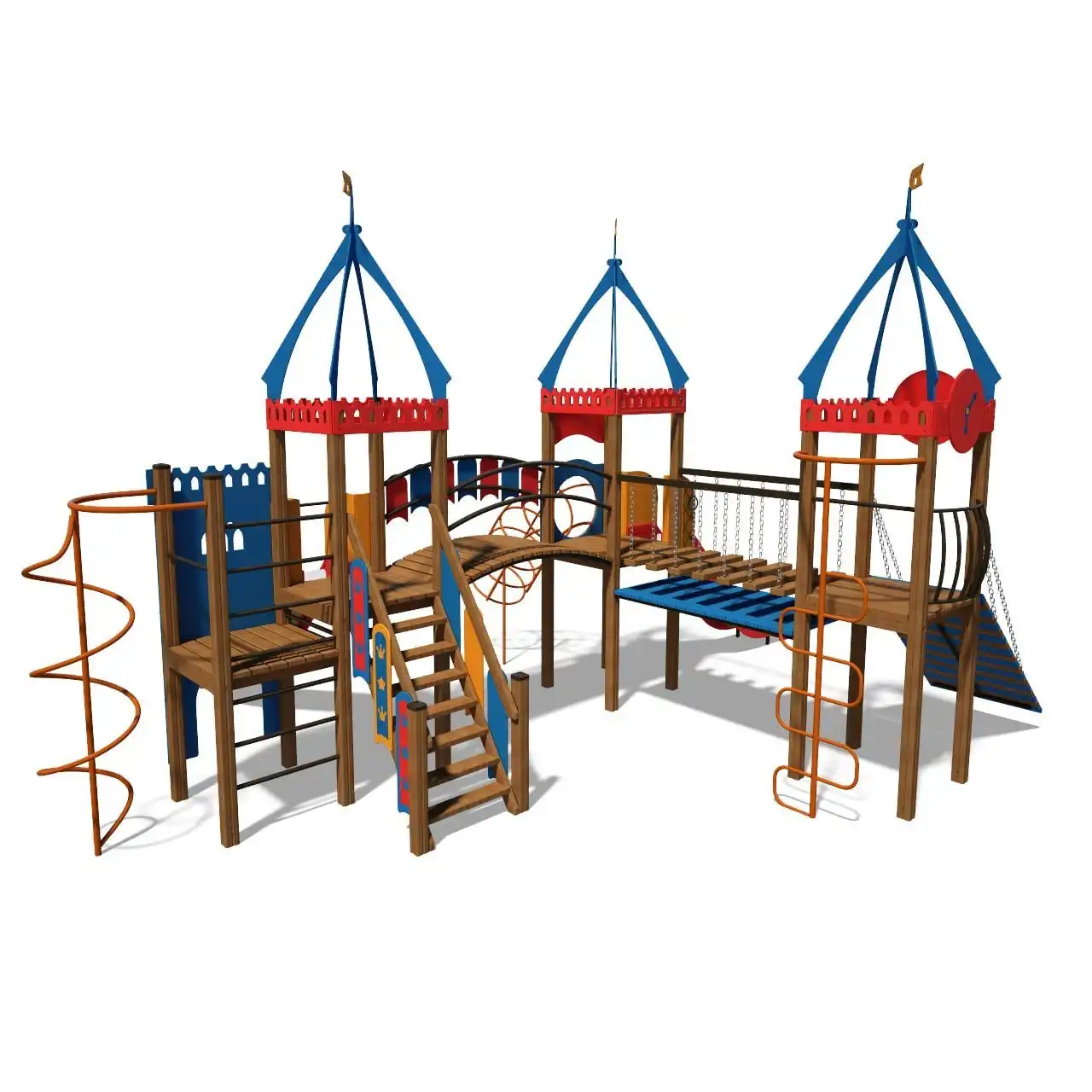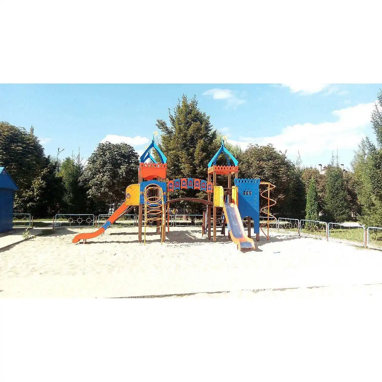 Ігровий комплекс "Замок-М" призначений для ігрових фізичних вправ на відкритому повітрі. Комплекс складається з трьох платформ, встановлених на стійках на висоті 1,5 метра, з'єднаних між собою переходами різної конфігурації. Крім переходів до платформ приєднаються різні підйоми та спуски.