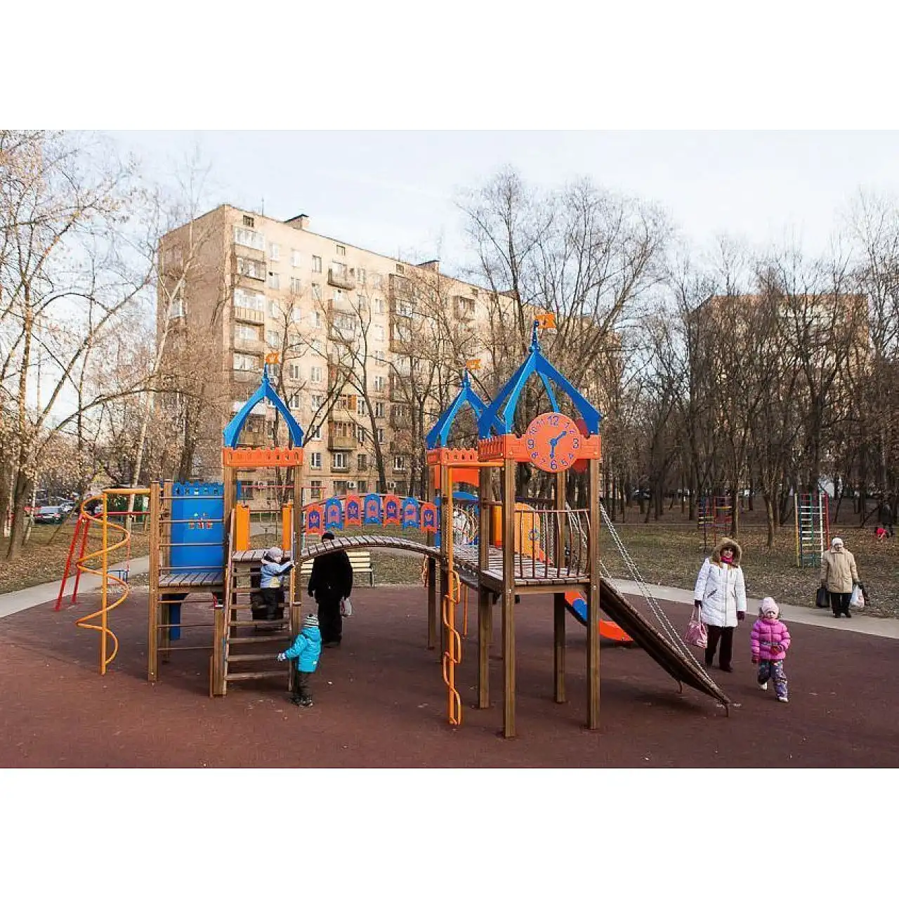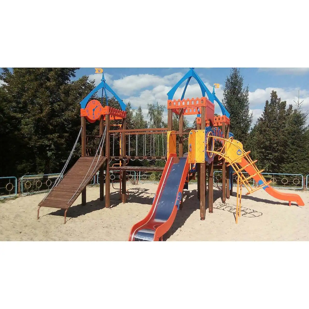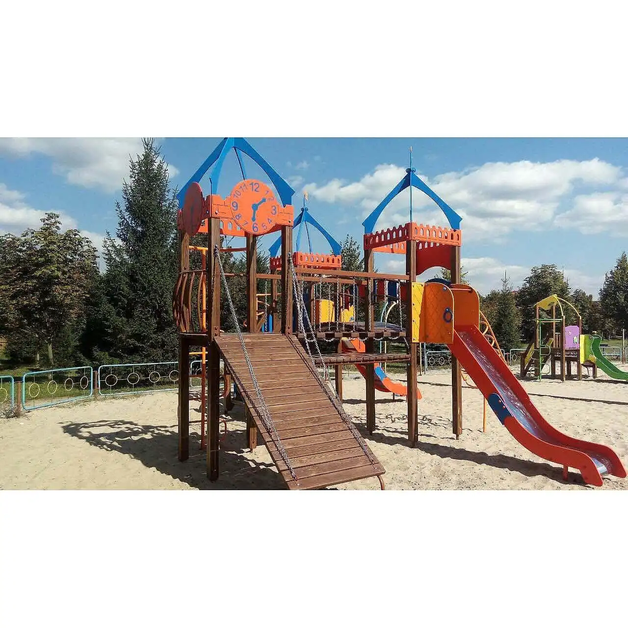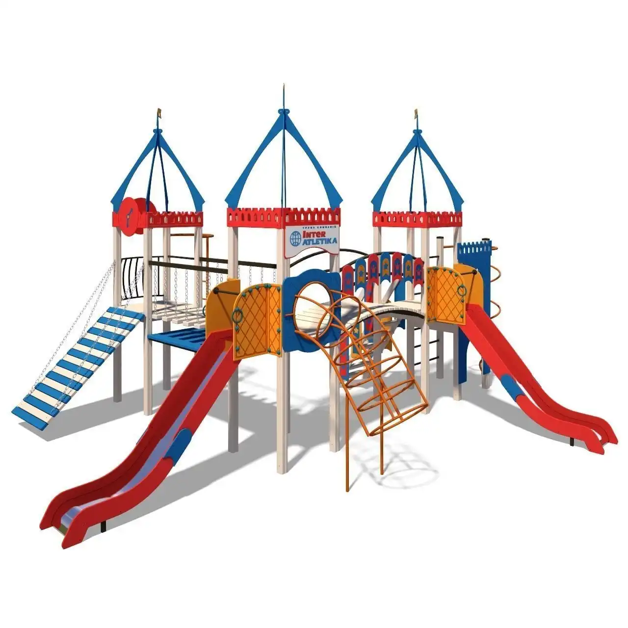Ігровий комплекс "Замок-М" призначений для ігрових фізичних вправ на відкритому повітрі. Комплекс складається з трьох платформ, встановлених на стійках на висоті 1,5 метра, з'єднаних між собою переходами різної конфігурації. Крім переходів до платформ приєднаються різні підйоми та спуски.