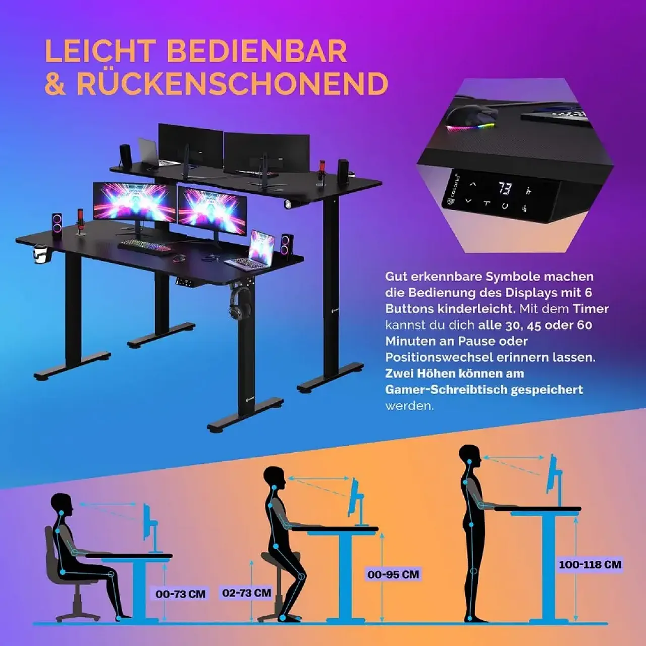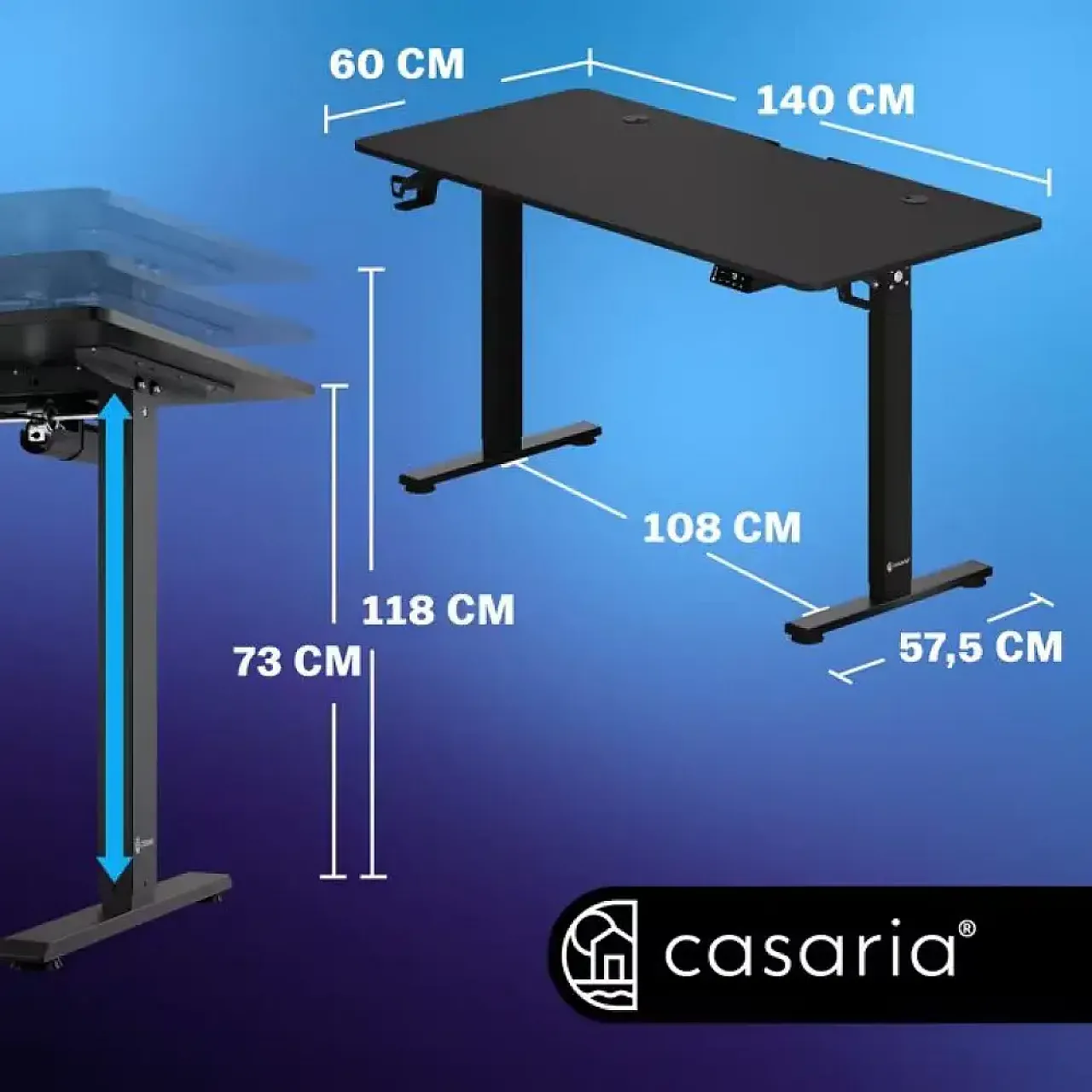 Революція домашнього офісу. Стіл із регулюванням висоти 73-118 см від Casaria дозволяє працювати як сидячи, так і стоячи. Стіл із рідкокристалічним екраном можна піднімати зі швидкістю 2,25 см/с та приємно тихий при 50 дБ. Він також має функцію пам'яті та нагадування. Є практичні тримачі для кабелів, склянок та гарнітур. Позиції кріплень можна вільно вибирати.